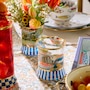 Available in a wide variety of different choices, you'll add something extra to your place setting or even a casual drink with these beautiful tumblers from Mackenzie-Childs. The glass is decorated with hand-applied decals, hand-painted accents and gold lustre embellishments.