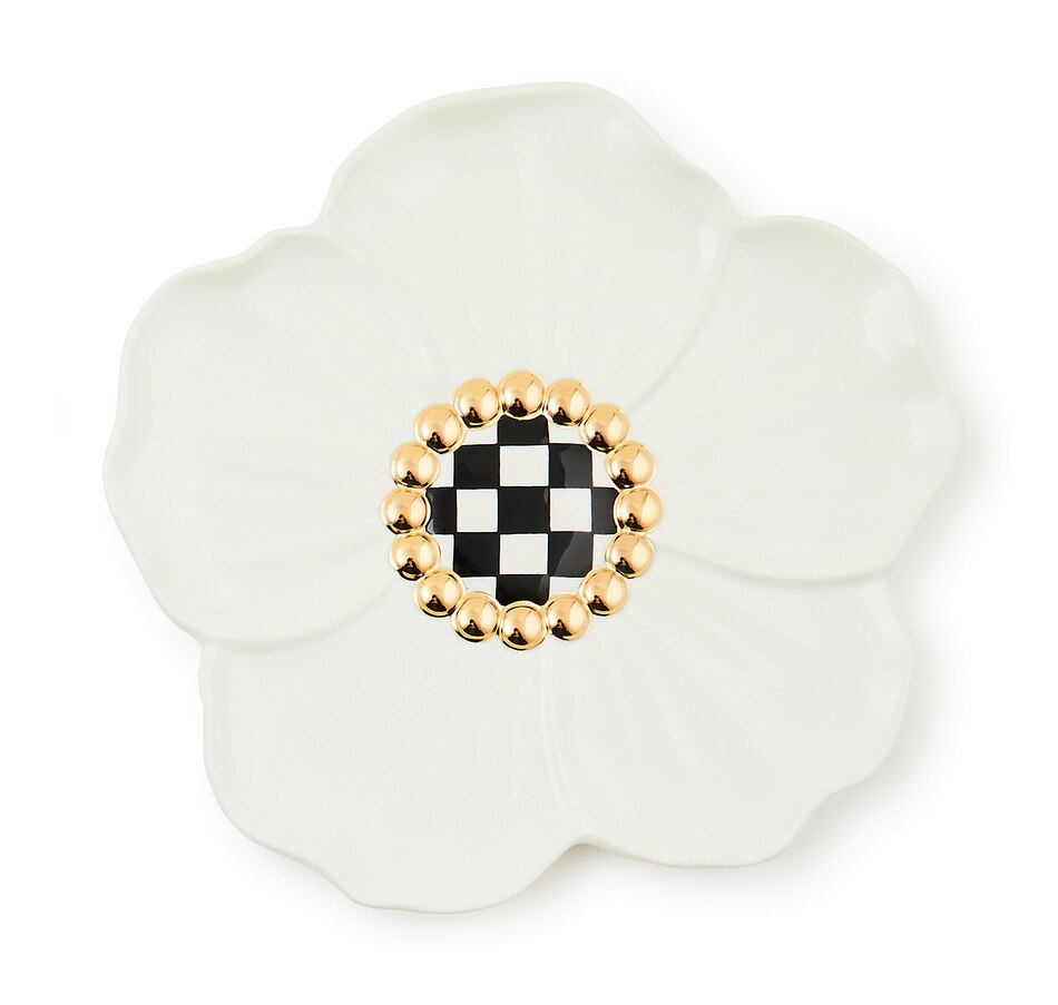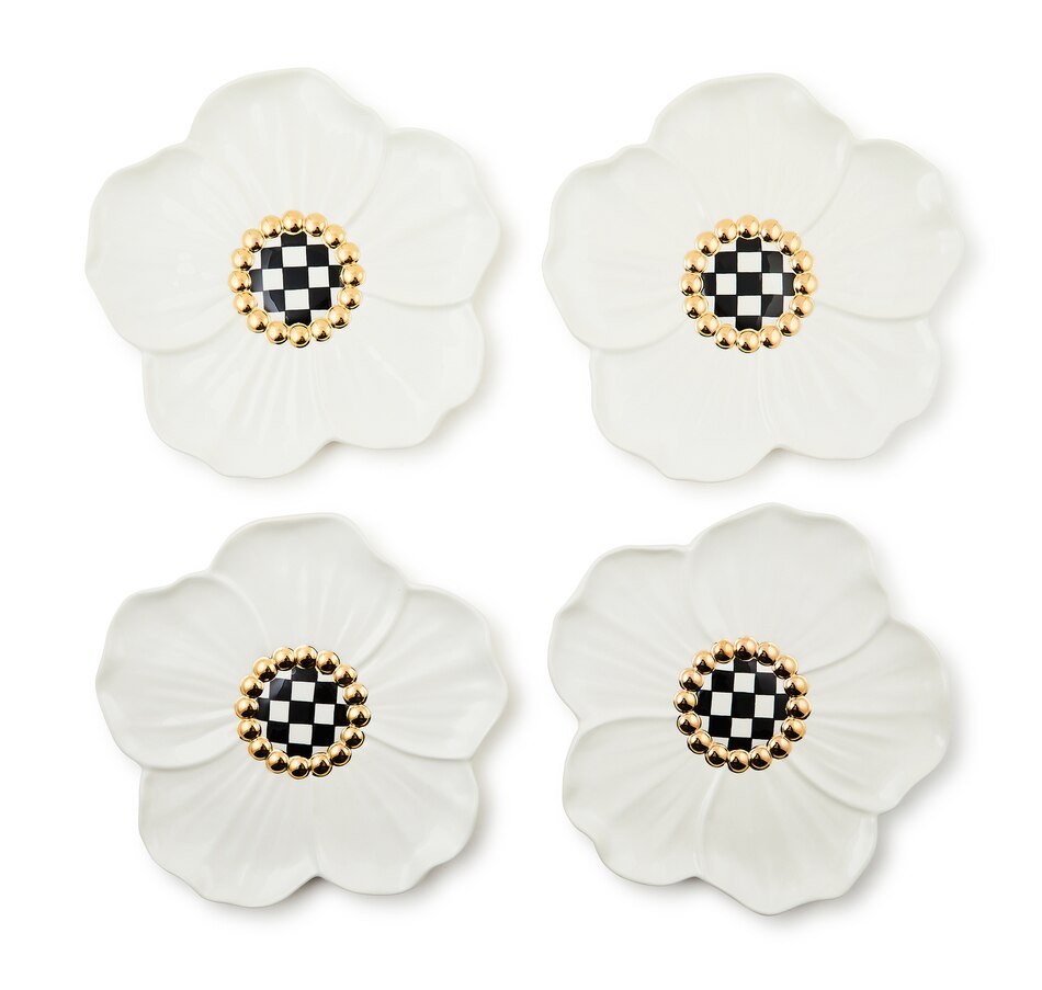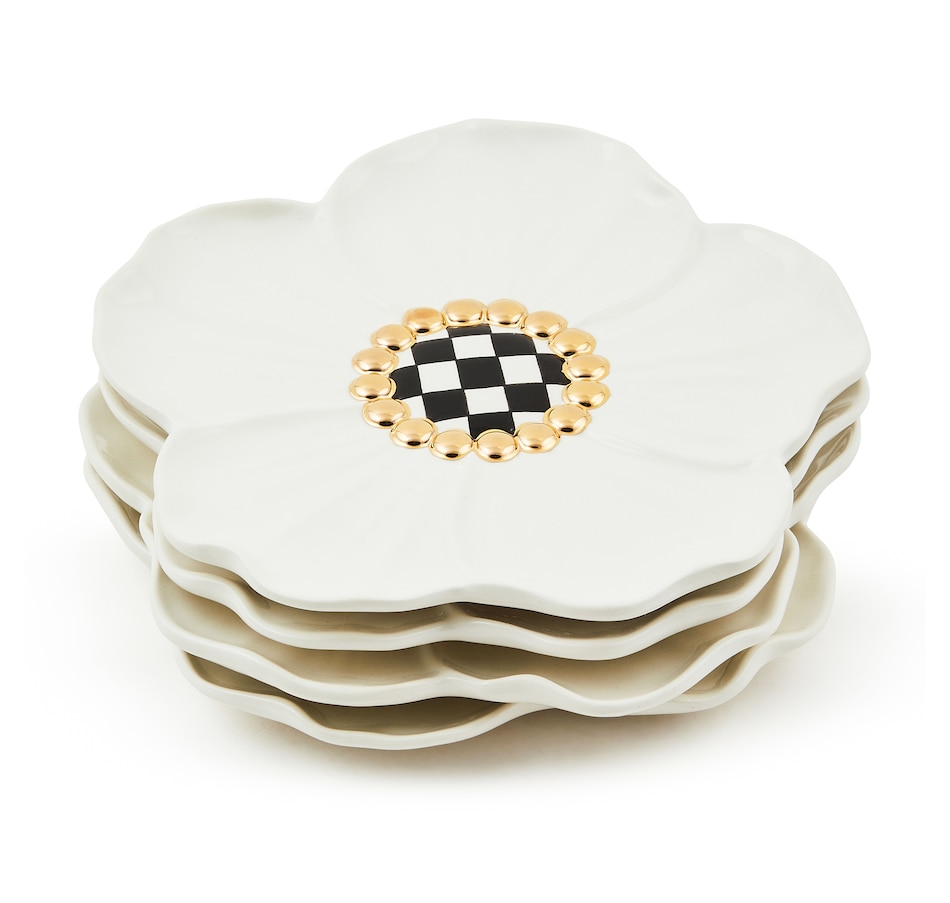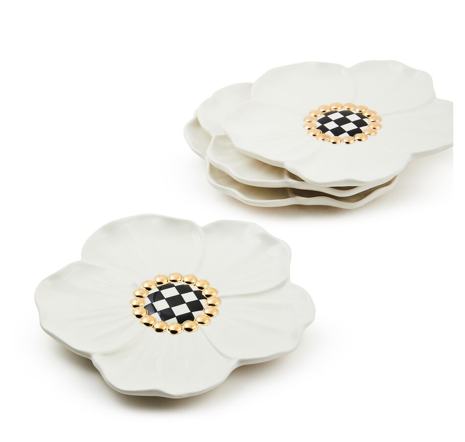 Set the scene for spring celebrations with this set of four ceramic floral blossom dessert plates. They're trimmed with a center of hand-painted check that's accented with gold lustre, and made of dolomite ceramic.