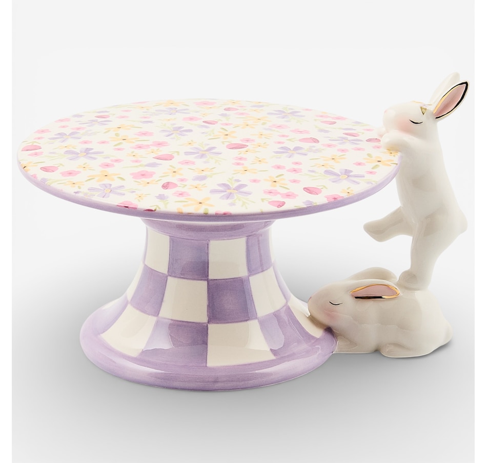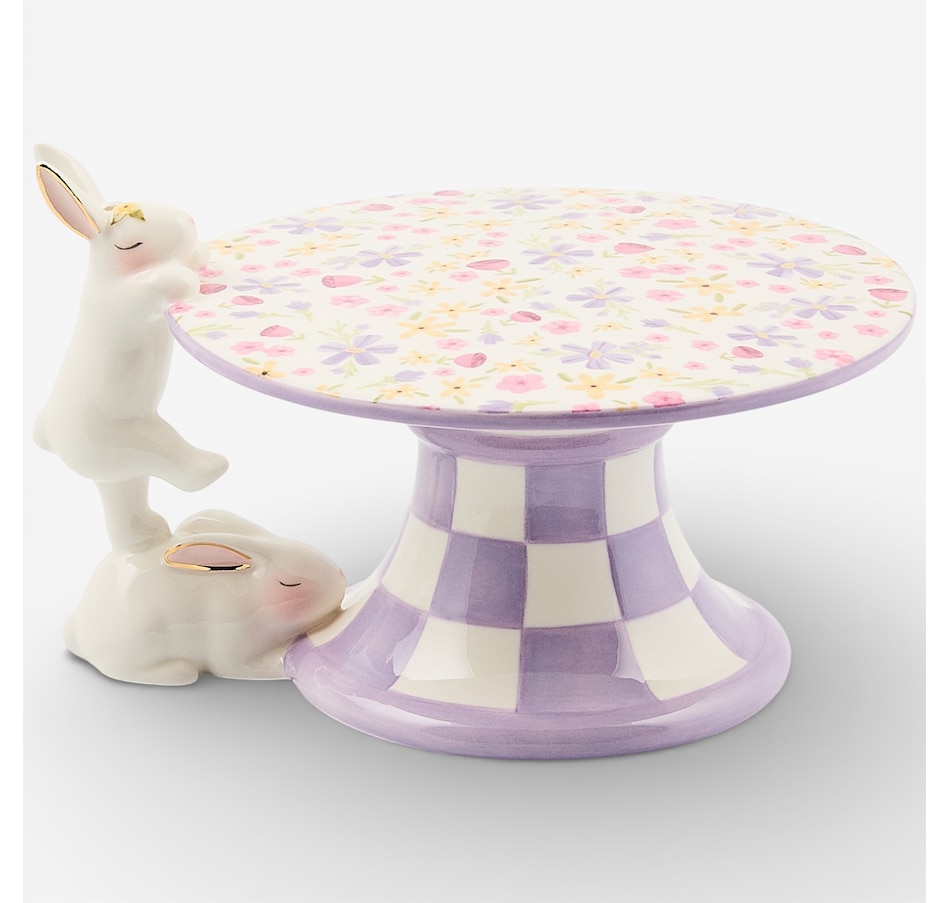 • Mackenzie-Childs Posie Patch Mini Bunny Ceramic Pedestal Platter