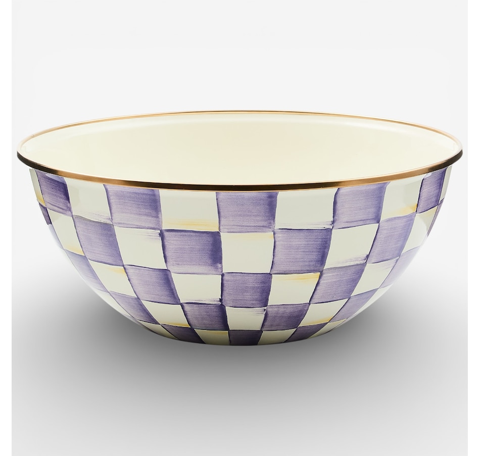 This bowl from Mackenzie-Childs is the perfect size for year-round use, and is also decorated with hand-painted purple checks on a heavy-gauge, hand-glazed steel underbody, and rimmed with bronzed steel. Nest it with the small, medium, and extra-large Violet Check Everyday Bowls (all not included), and you'll be ready for every kitchen task!