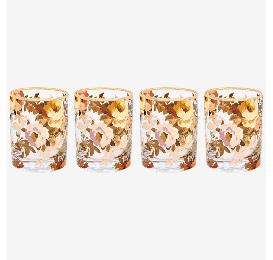 Make any occasion more special by setting the table with this set of tumbler glasses from Mackenzie-Childs, featuring the brand's hand-applied floral design and trimmed with gold lustre. Cheers to sipping in style!