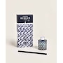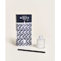 The blue diffuser features blue lacquered glass and is pre-filled with the woody and mysterious Under the Olive Tree home fragrance. Resinous notes of oud and olive wood are enhanced by a chypre base of patchouli, creating a warm, intoxicating ambiance. This elegant, understated reed diffuser and evocative French home fragrance will sweep you away on a Mediterranean getaway!