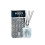 The Frosted reed diffuser comes pre-filled with the Cotton Caress fragrance. Notes of orange blossom and musk meld with cedarwood and vanilla to capture the soothing aroma of an airy breeze. Let this elegant design and fragrance sweep you away in a soothing whirl of frosty perfection!