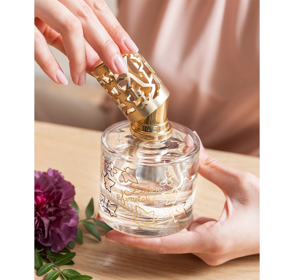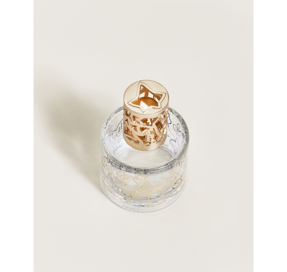 Indulge your fantastical side with a fragrance lamp set as whimsical as a fairy tale. This gift set contains the Lolita Lempicka perfume, adapted for the home and accompanied by a Maison Berger fragrance lamp paying homage to the original perfume bottle design. The Lolita Lempicka home fragrance opens on fresh notes of star anise and the bite of ivy leaves that give way to seductive licorice flower and delicate orris. Tonka bean, creamy wood, caramel and cistus labdanum close the composition on a gourmand, sensual base.