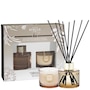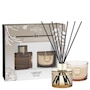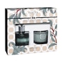 This set is for anyone who loves warm fragrances and beautiful decorative objects! With its muted vintage green colour and classic shapes, this set is an indulgence that easily complements any décor, and the silvery accents add a touch of shine. The small formats make a great introduction to the enveloping Velvet of Orient home fragrance.
