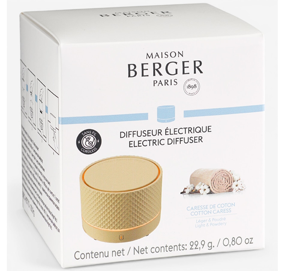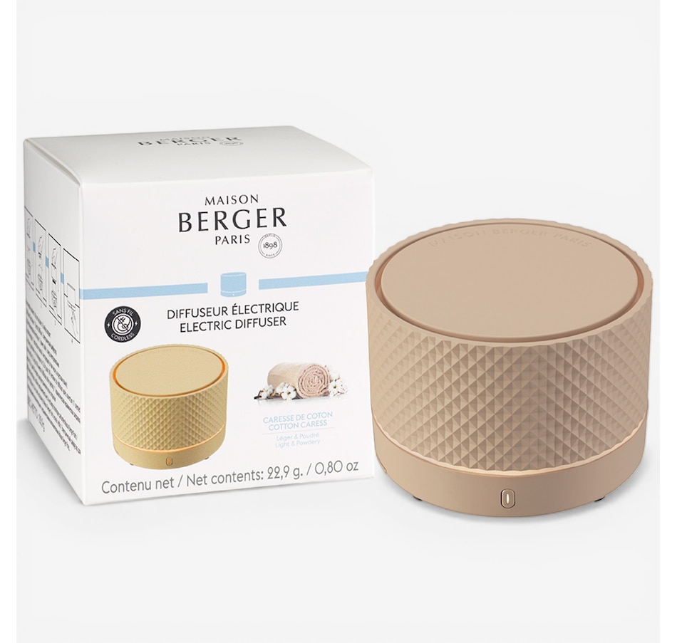 The updated Nomad electric diffuser from Maison Berger offers its signature portable cordless scent with a newly refined textural design for sophisticated decorative touch, and the trendy neutral shade blends harmoniously into any interior.