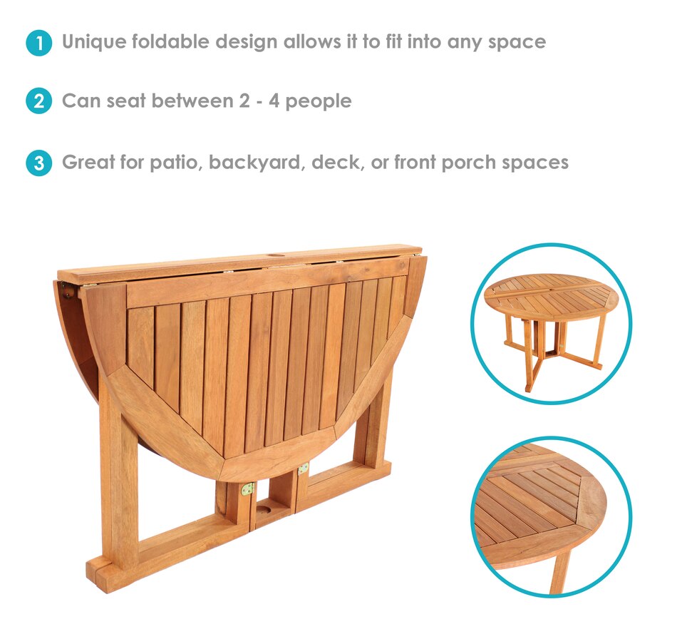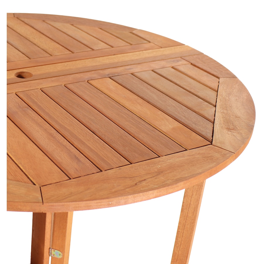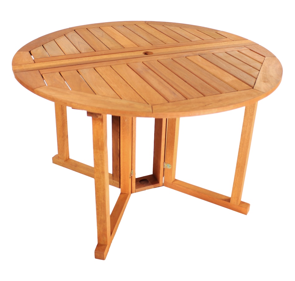 Make sure there is room for everyone when dining al fresco with this elegant Malaysian hardwood gateleg table. Its pivoting legs makes the tabletop easy to adjust to ensure there is plenty of table space for all. When the dropleaf tabletop is lowered, the table can seat up to 4 people comfortably around it. When one side of the dropleaf tabletop is raised, there is room for up to 2 people. Fold down one side to press the table against a wall for additional floor space. Fold down both sides when not in use for convenient storage. This sophisticated piece is constructed of stylish Malaysian hardwood for a sturdy design and classic beauty that will complement any patio decor. It also has a teak oil finish for added style and additional protection from the outdoor elements. This heavy-duty table weighs a sturdy 52.4 lbs and supports up to 300 lbs. Place this lovely table on the deck, patio, or in the backyard for family and friend gatherings.