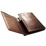 This trifold wallet features an abundance of credit card slots, a single bill section and an identification card window.