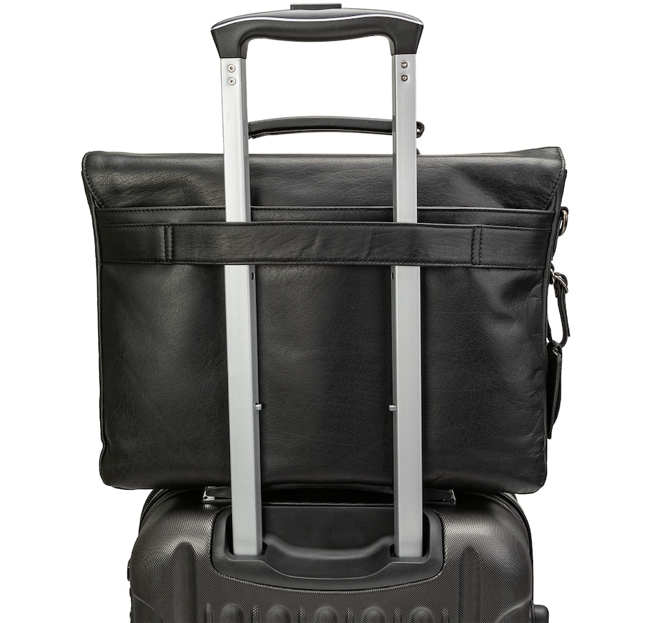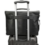 This laptop/tablet briefcase features a compartment with a laptop padded sleeve to keep your devices secure and protected, a file-folder compartment, a zippered organizer on the front with multiple practical pouches, and an RFID secure pocket equipped with the latest RFID wave-blocking technology. The rear is equipped with a pocket and an attach-a-bag strap to piggyback the briefcase onto other baggage.