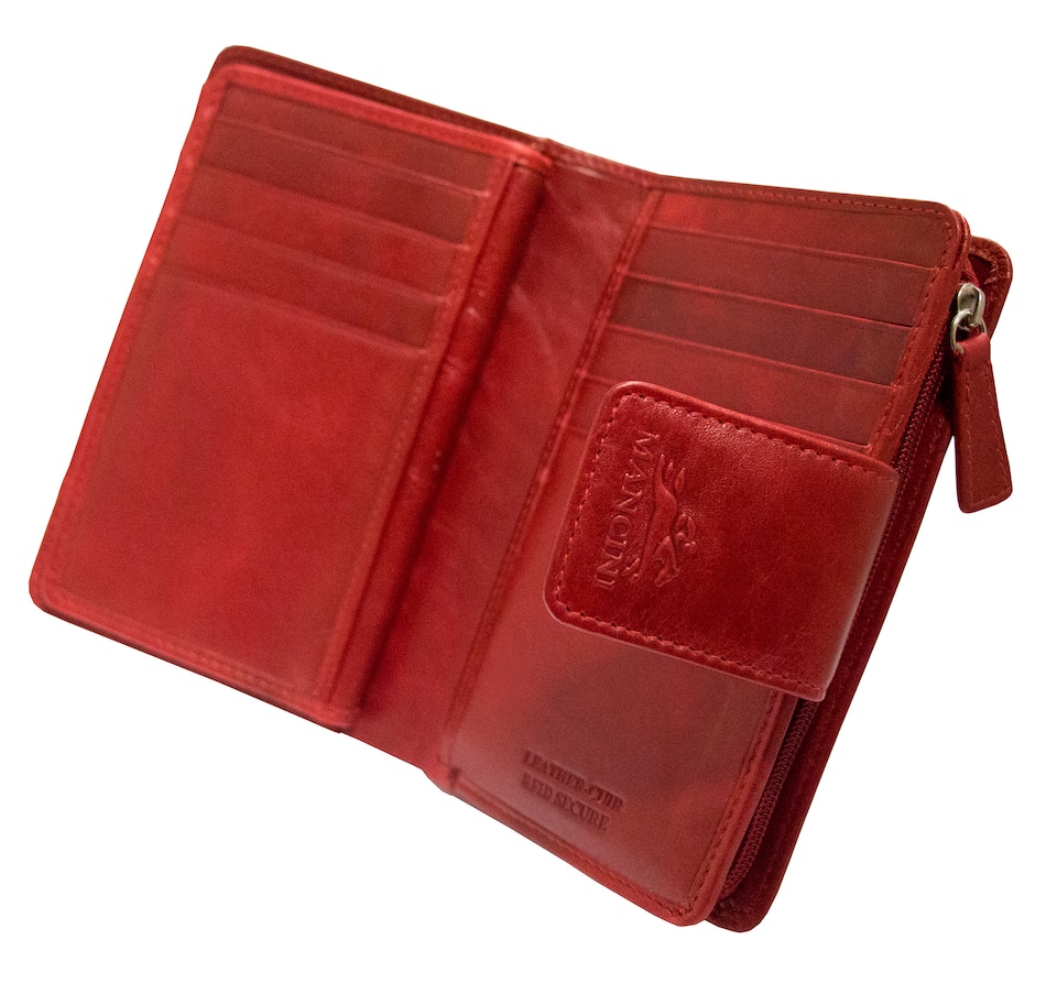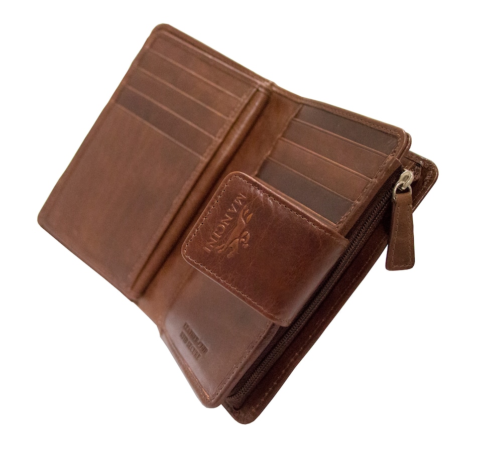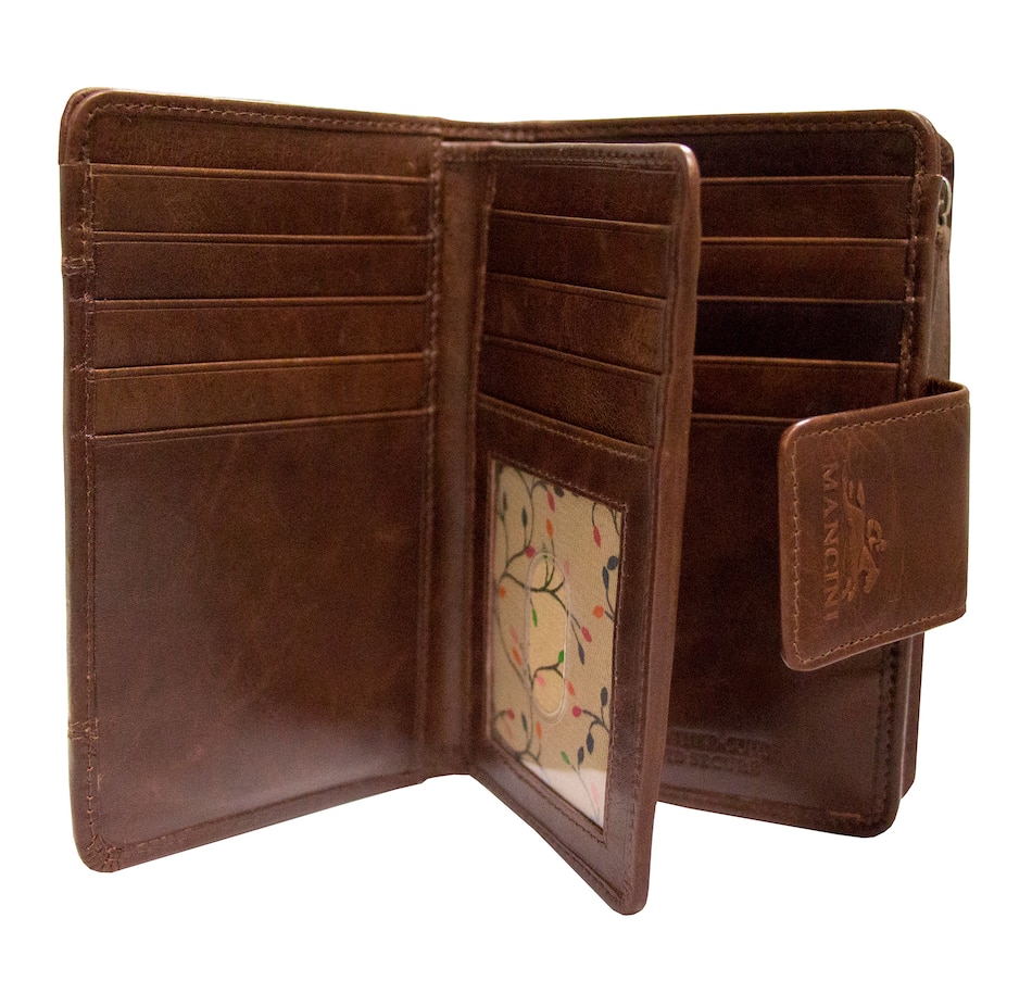 This clutch will hold all your personal documents and more. Numerous slots and pockets will organize all your cards, identification, tickets and receipts. It also features a divided compartments for coins.