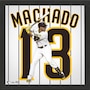 Manny Machado's action figure is superimposed on the back of his jersey, over his number in a 13" x 13" wood frame under glass. This product is officially licensed by the MLB and MLBPA and delivered ready to hang; it is proudly made in the USA by The Highland Mint!