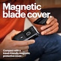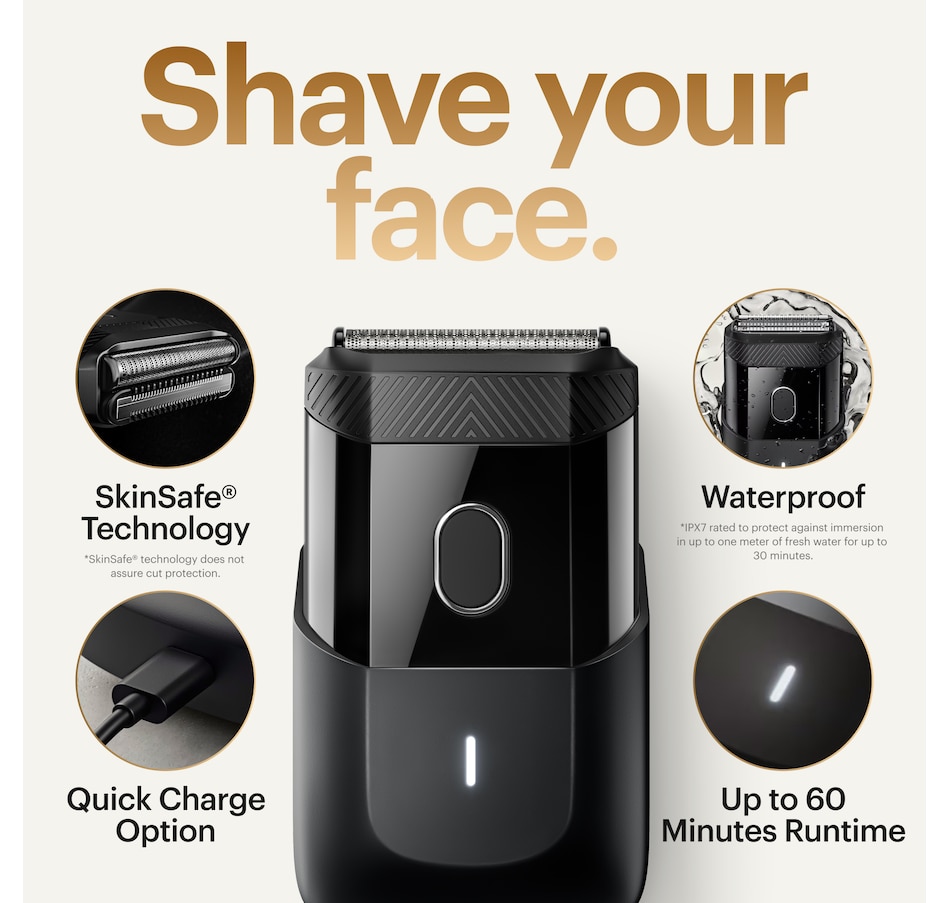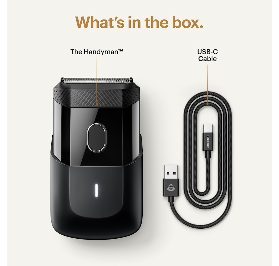 Achieve perfect grooming with the Manscaped The Handyman SkinSafe cordless foil shaver. Its distinct, unique two-blade design features a long-hair leveller for trimming long hair and a foil shaver for a smooth finish. The compact design and protective cover make this shaver perfect for travel. The rechargeable lithium-ion battery provides up to 60 minutes of use.