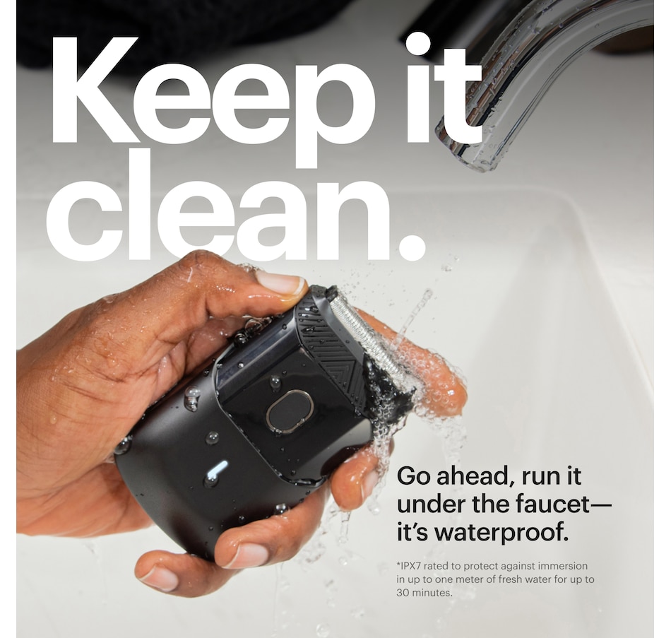 - Waterproof shaver with IPX7 rating is designed to withstand immersion in fresh water up to one metre deep for up to 30 minutes