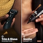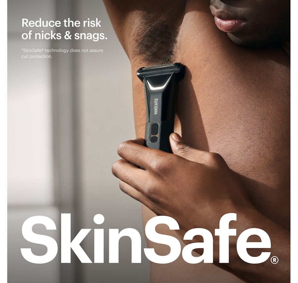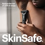 - Use SkinSafe trimmer blade to trim the top, then follow up with the SkinSafe foil blade for a smooth, finishing touch (SkinSafe technology does not guarantee cut protection)