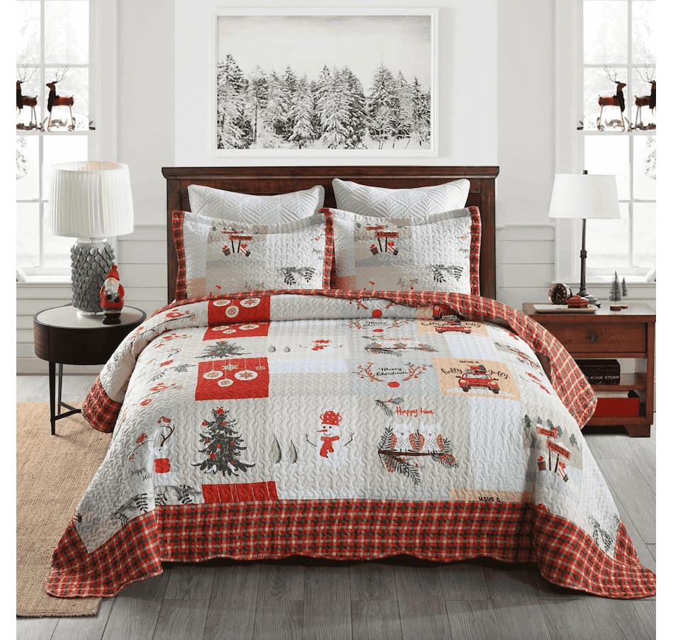Elevate your bedroom into a festive sanctuary with the MarCielo Christmas Quilt Set Bedspread Set B022. Made from super-fine fibers, this quilt offers exceptional softness and warmth, suitable for year-round enjoyment. It's expertly designed for both comfort and style, with an added focus on easy maintenance for your convenience.