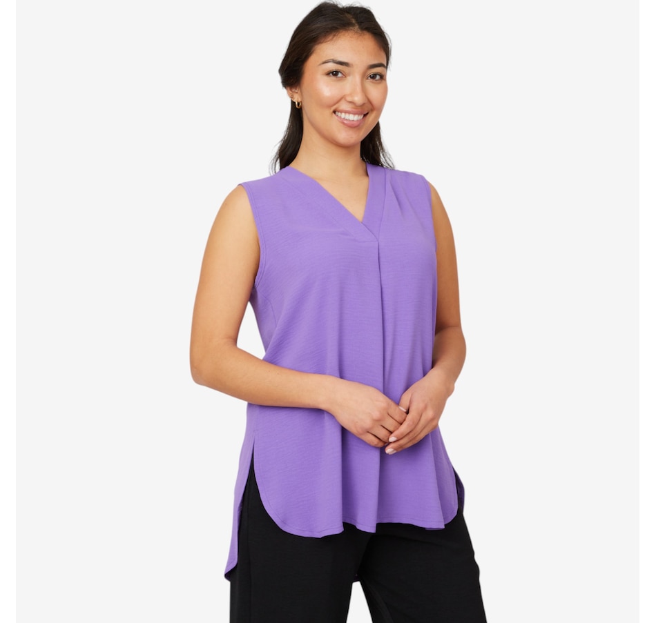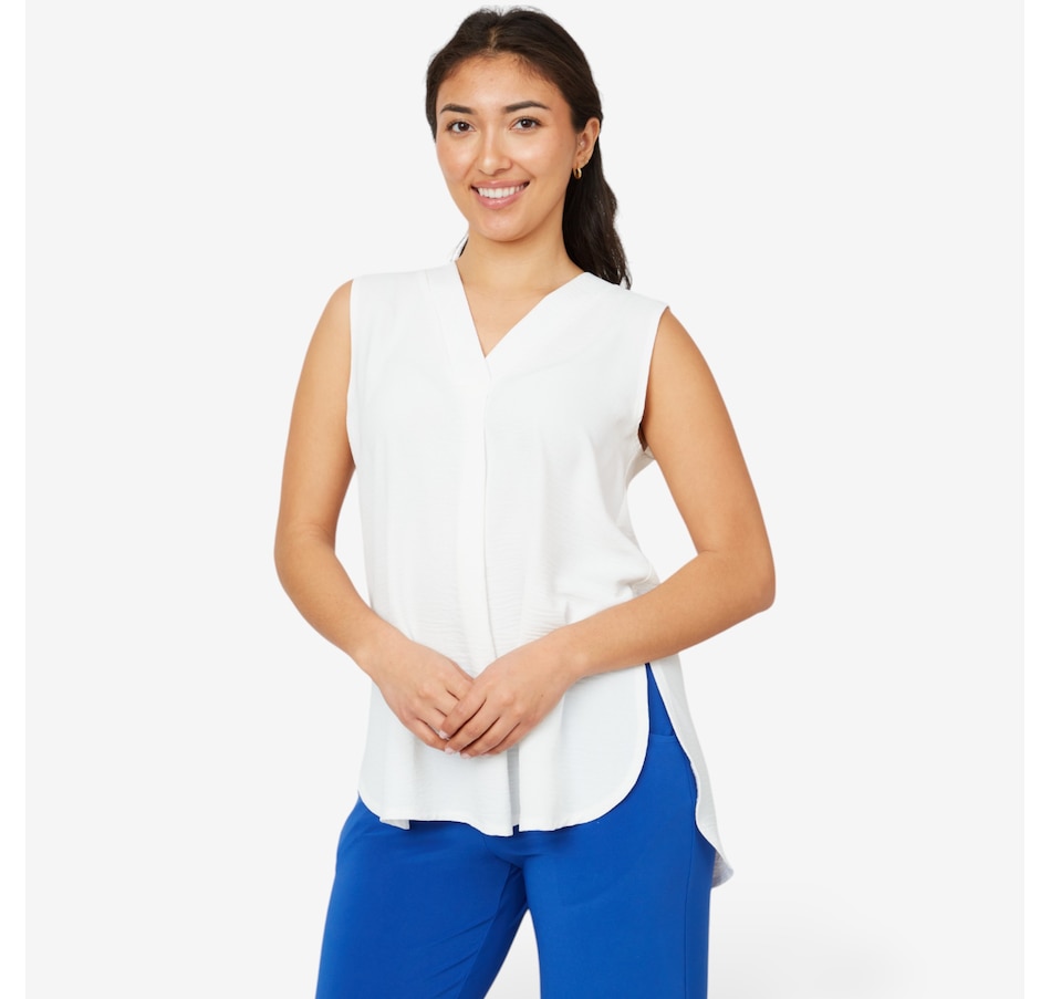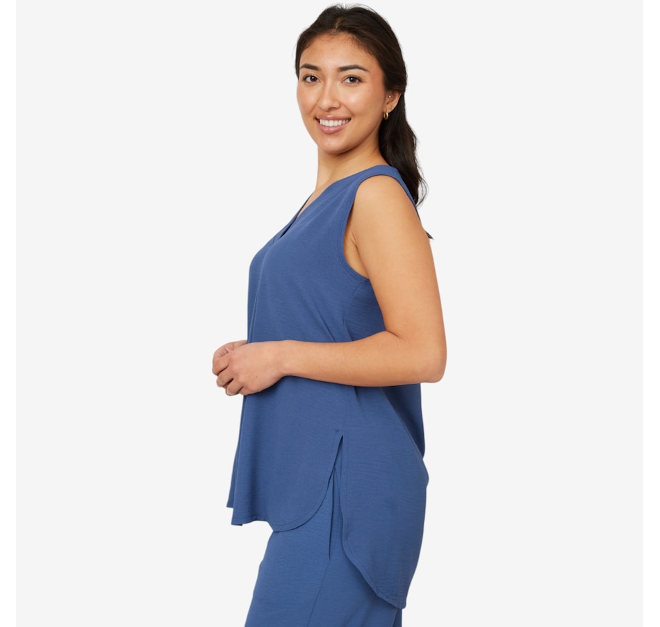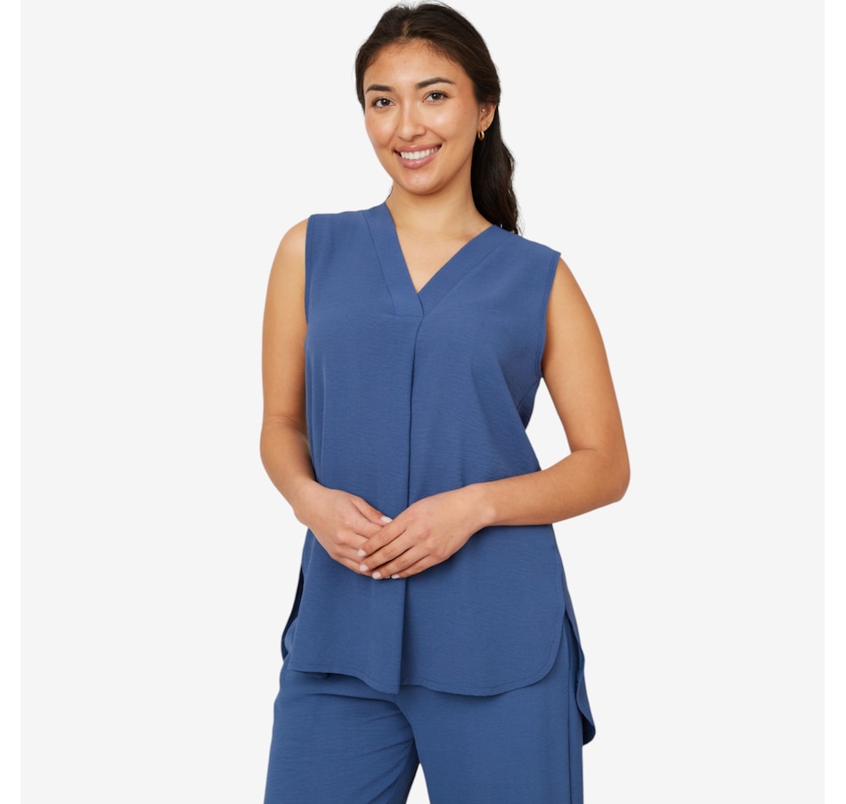 This sleeveless v-neck features front and back deep pleats that give you some extra room around the body. Lightweight and breezy, this versatile top works for any occasion and looks just as good paired with linen shorts as it does with jeans or any other bottom from the Marallis collection.