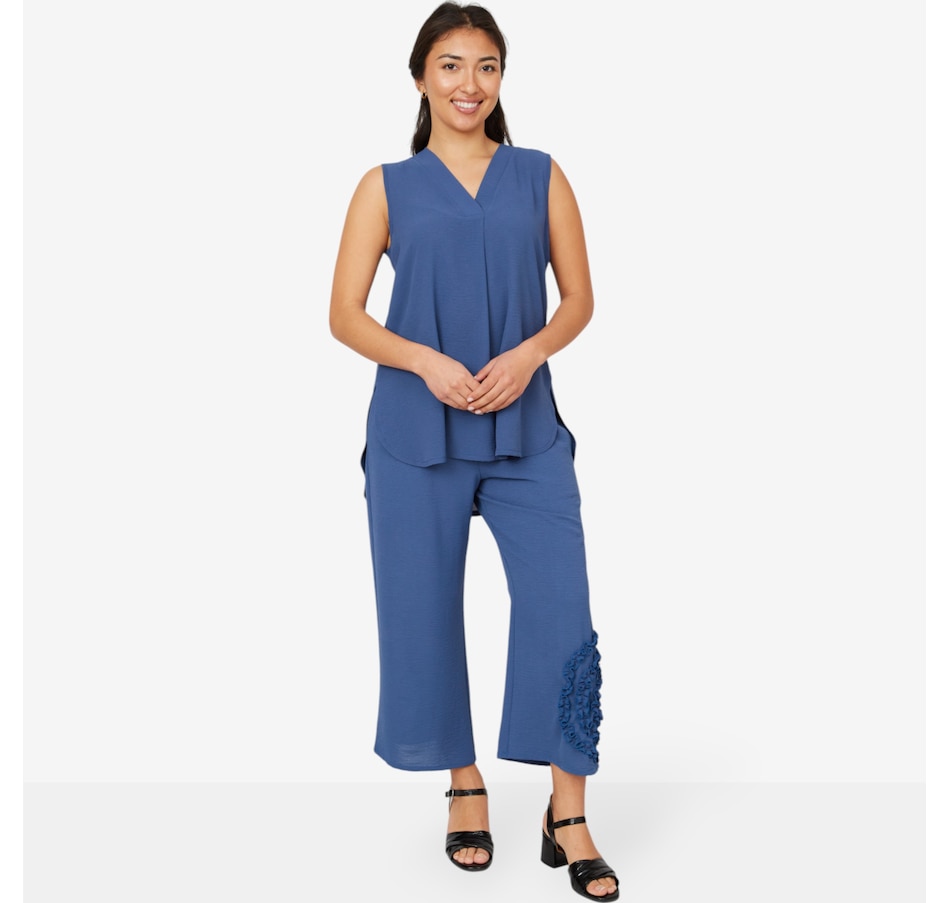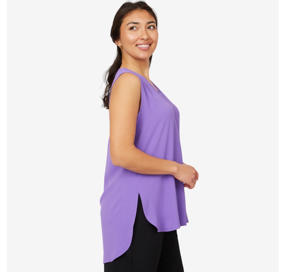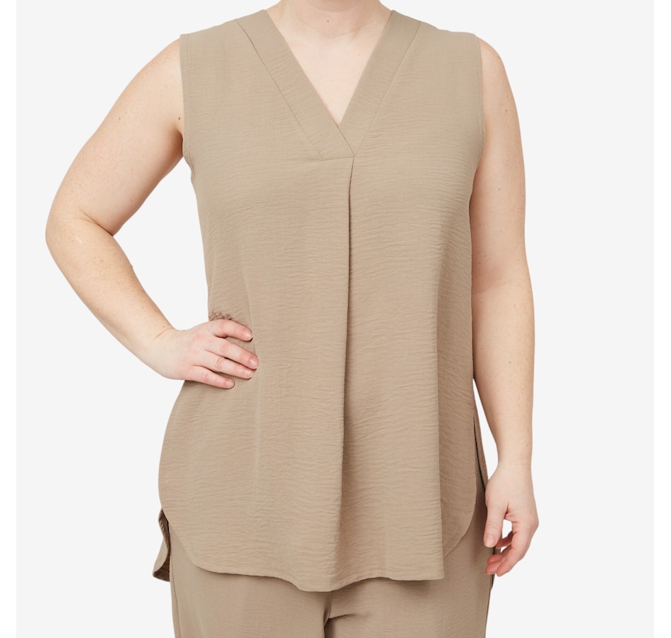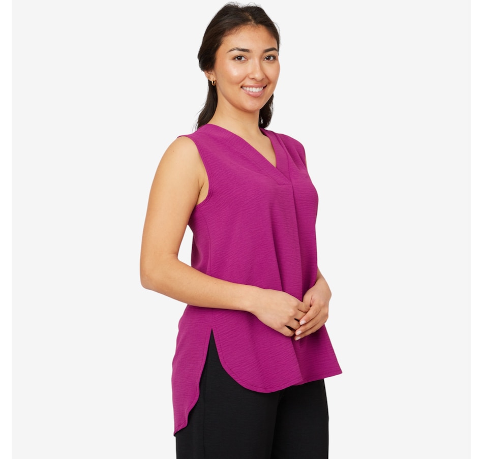 This sleeveless v-neck features front and back deep pleats that give you some extra room around the body. Lightweight and breezy, this versatile top works for any occasion and looks just as good paired with linen shorts as it does with jeans or any other bottom from the Marallis collection.