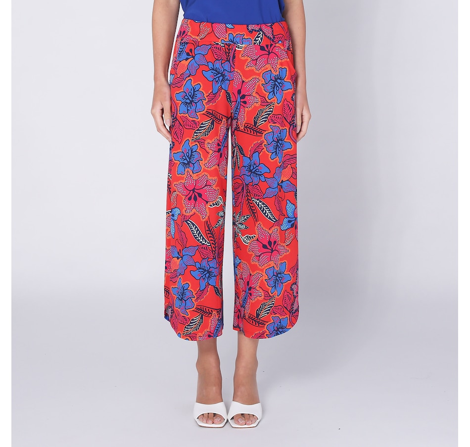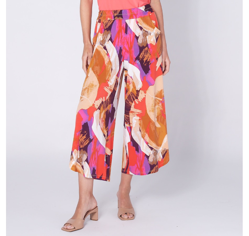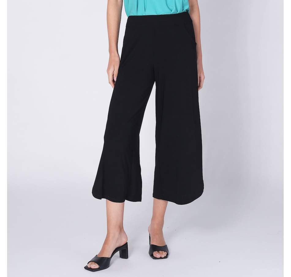 Walk with stylish ease wearing these smooth rounded hem pants. Made in a cropped length, it gives volume and shape while still having the comfort of a pant. It features an elastic waistband, front yoke, lightweight stretch fabric, and of course, front pockets! It's available in classic black and an array of prints to rock all throughout the summer!
