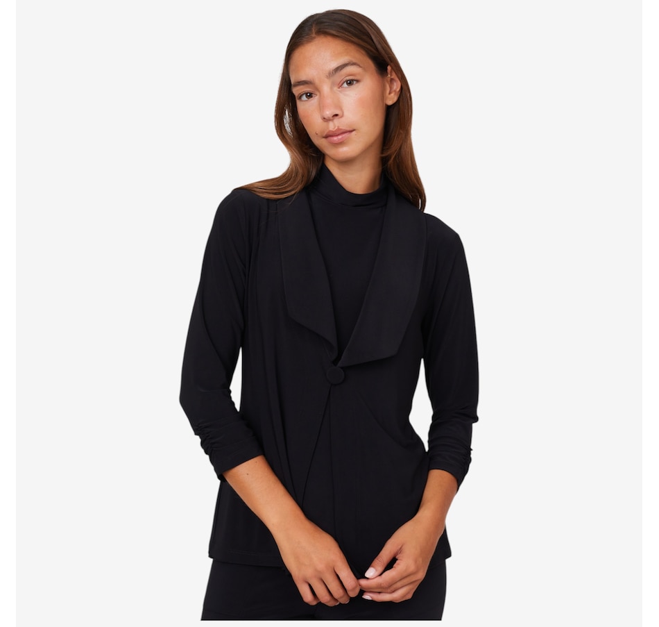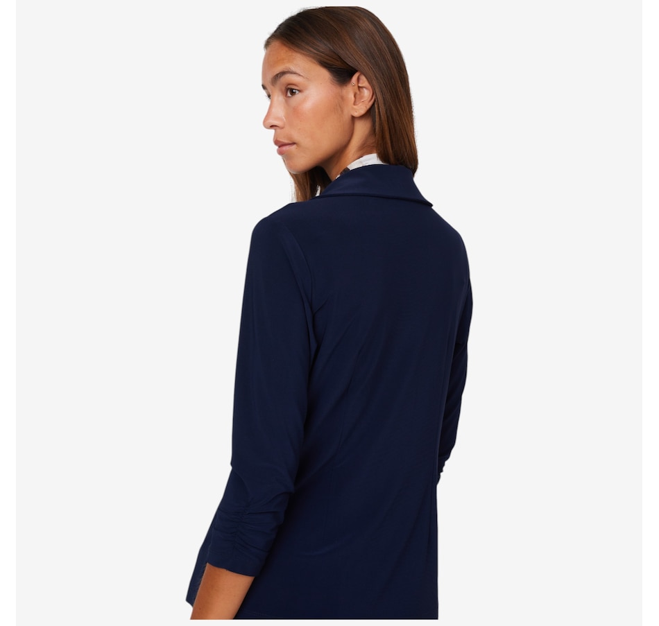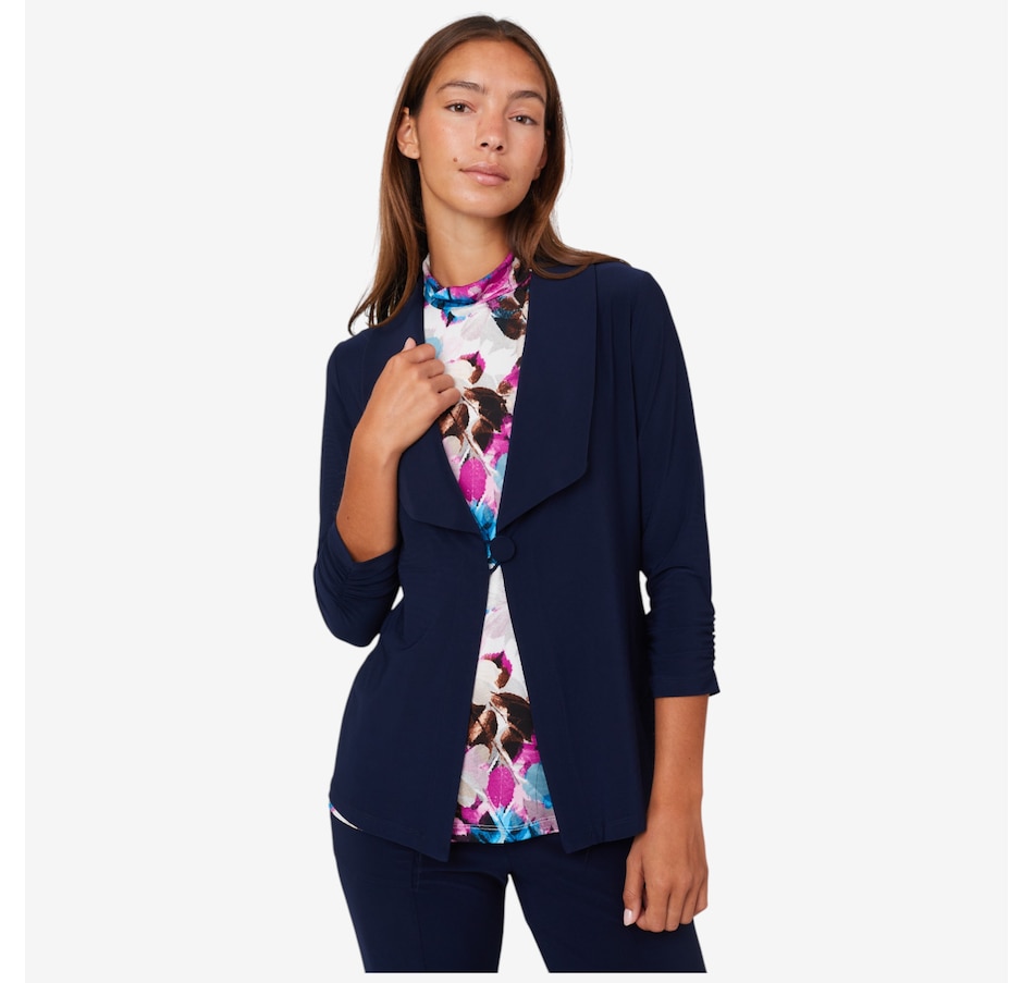 This jacket has a flattering, nipped-in silhouette, and all the classic details with a button front and big round collar. Wear it with jeans, over a dress, or buttoned up for a polished, pulled-together vibe. This versatile jacket has ruched details at the sleeves.