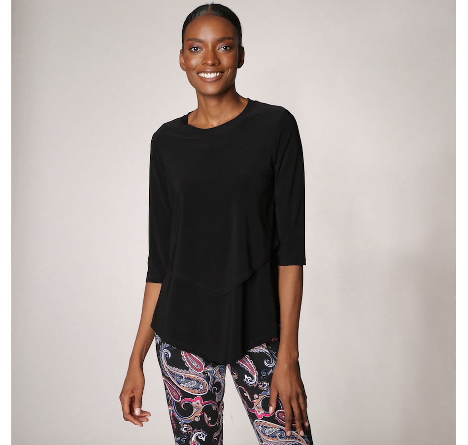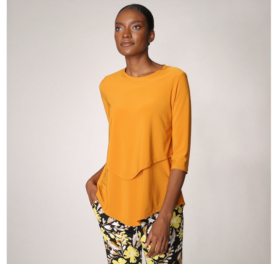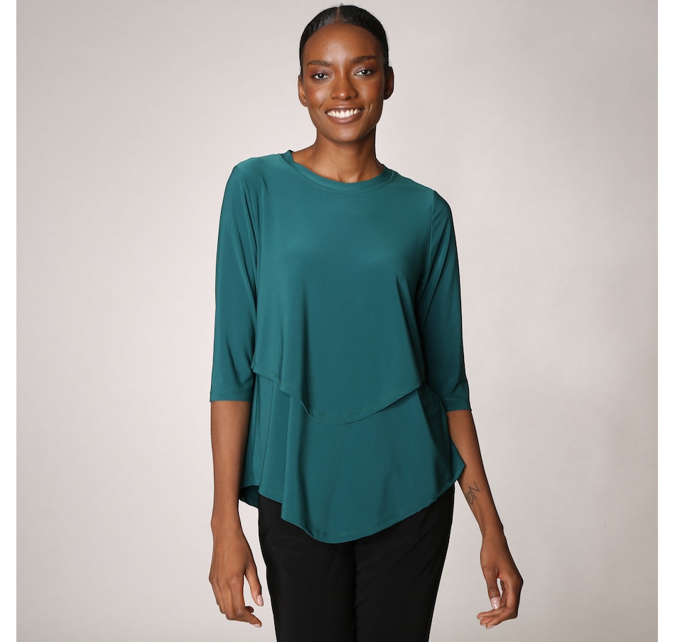 One up your top game with this two layer top from Marallis! Both of the tiers cascade to the front to create a fresh look.