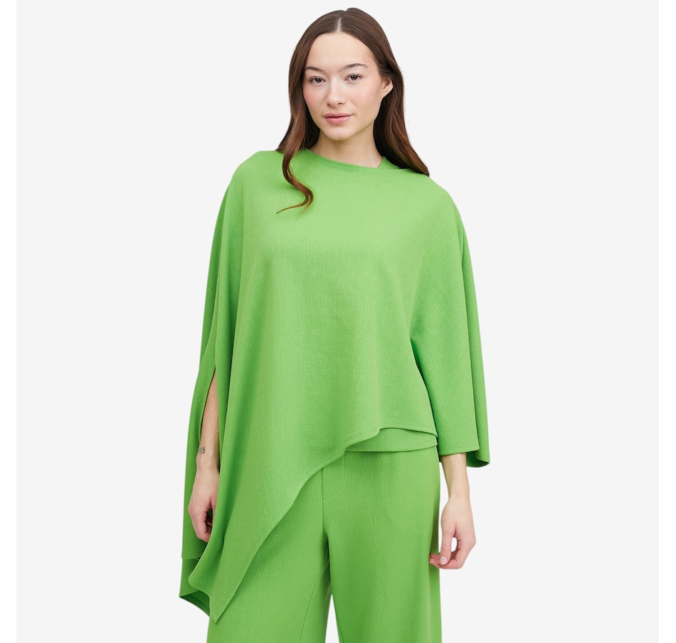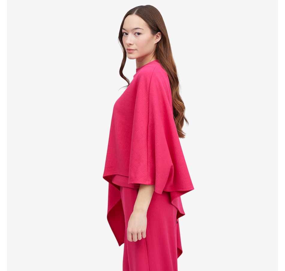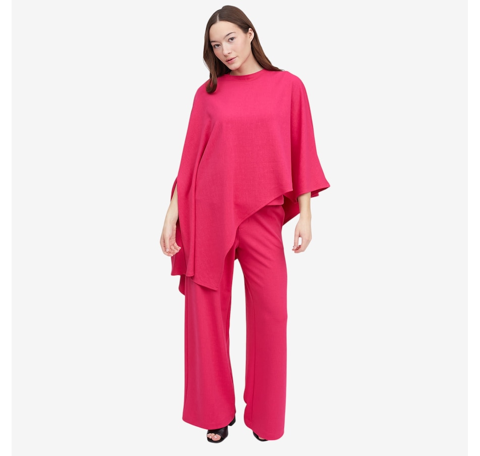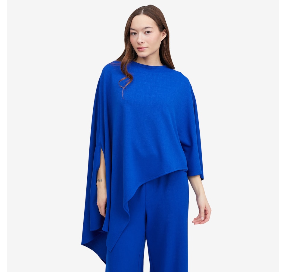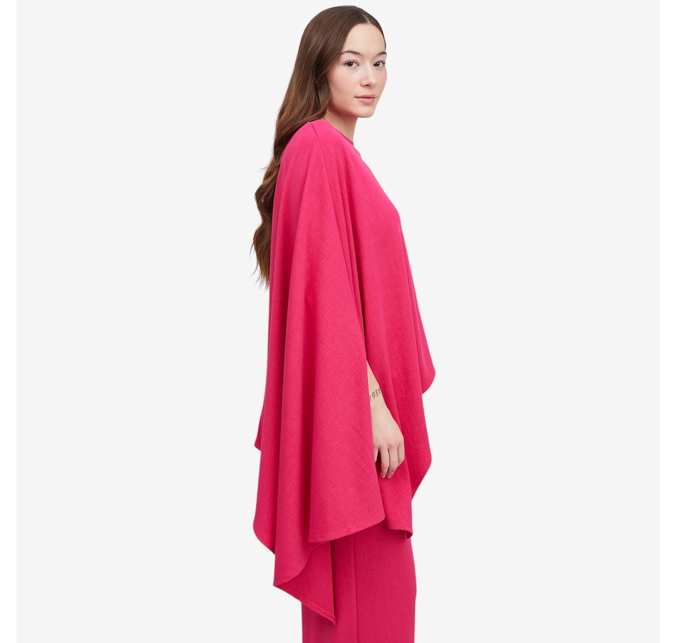 An effortless layering piece designed to complete the look, the linen jacquard asymmetrical shawl from Marallis features long sleeves and a soft asymmetrical drape on one side for added movement and style. Lightweight and easy to slip on, it offers extra coverage without weighing you down. Designed to match the coordinating tank top and wide‑leg pants, this unlined style features a boat neckline and a serged hem. Designed and produced in Canada, it is available in five versatile colours and offered in a one‑size, oversized fit. Available only at TSC.