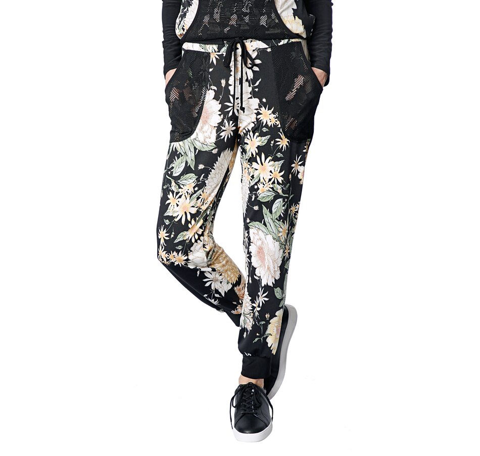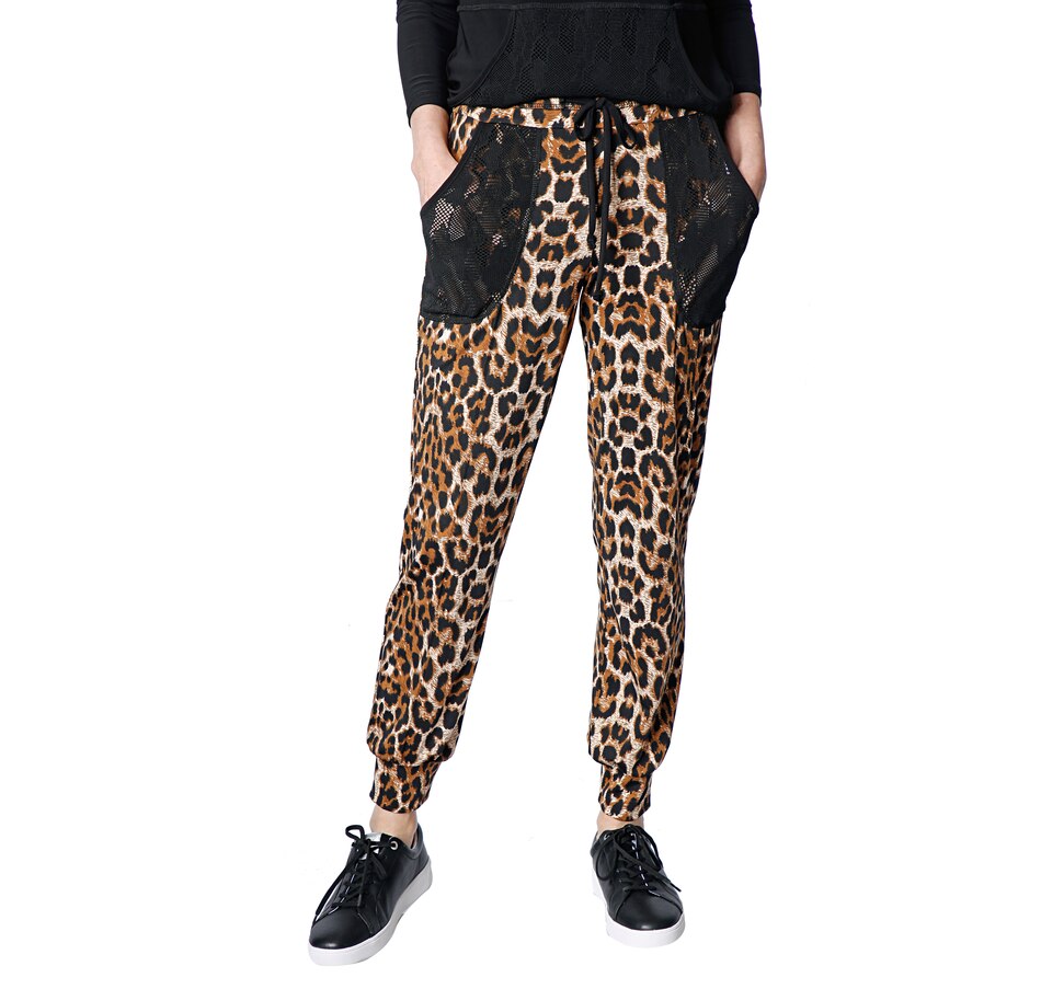 Sporty-chic reveals its softer side with the lace pockets that adorns this jogger pant. Made from sleek Brazilian knit fabric, lightweight and breathable.