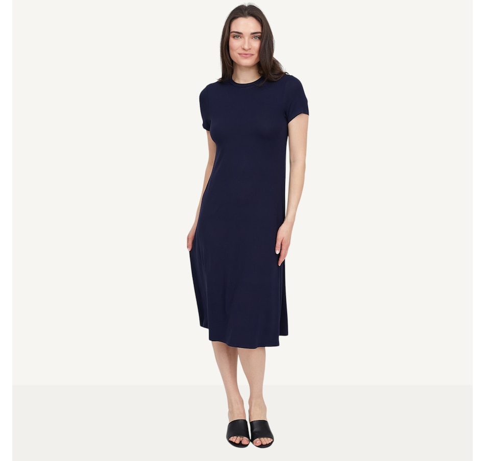 Rayon Jersey Crewneck Midi T-shirt Dress