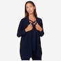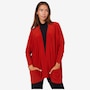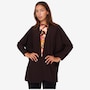This no-closure piece is perhaps the most comfortable cardi you will wrap yourself in! Hitting just below the hips, you will enjoy ample rear coverage and a relaxed fit, complete with two set-in pockets and snug cuffs. this is the ideal garment for a heavier top build person. Go with your regular size for a more flattering look or size down for more sophisticated look.
