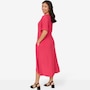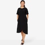 This long, over-lap tulip front dress is the ideal complement to your favourite pair of jeans or breezy pair of pants. Done in Marallis' famous Brazil knit fabric (known for its exceptional stretch) this top is flattering on every figure and easy to style. A keyhole cutout button closure at the back makes for a more fashionable look and an easy pull on. It finished with handy, classic side pockets too.