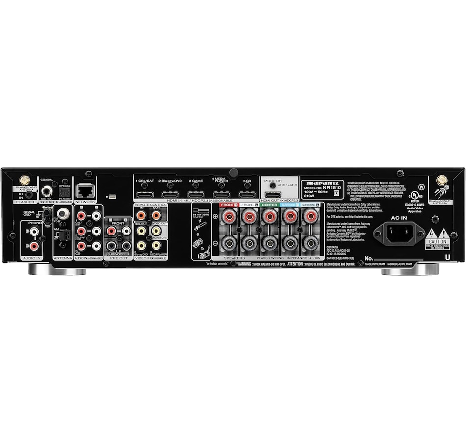 This 5.2-channel stereo receiver from Marantz may only measure four inches tall, but it's a complete home entertainment box, loaded with features. Connect all your audio sources, enjoy wireless streaming, plug your USB drives or play vinyl using the MM phono preamp—it’s got it all!