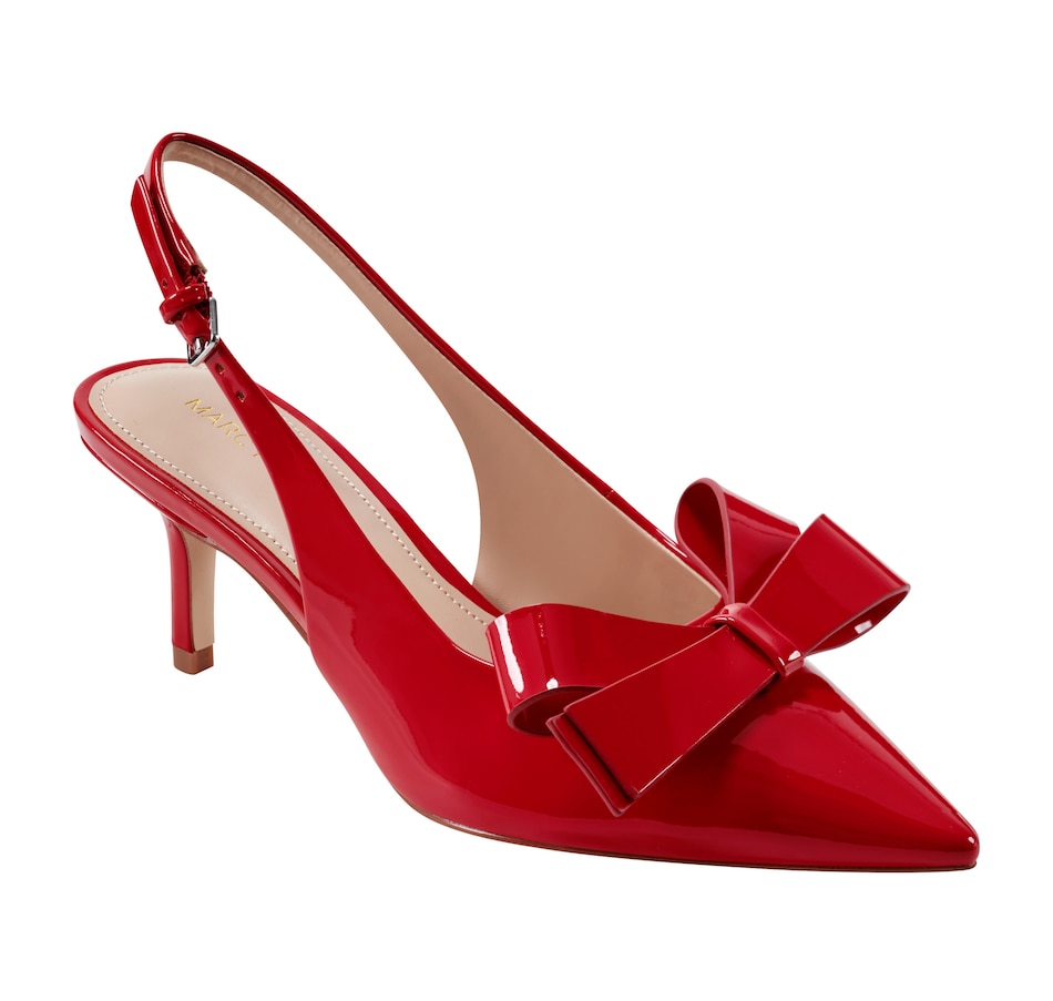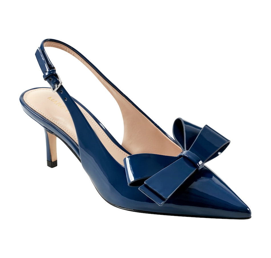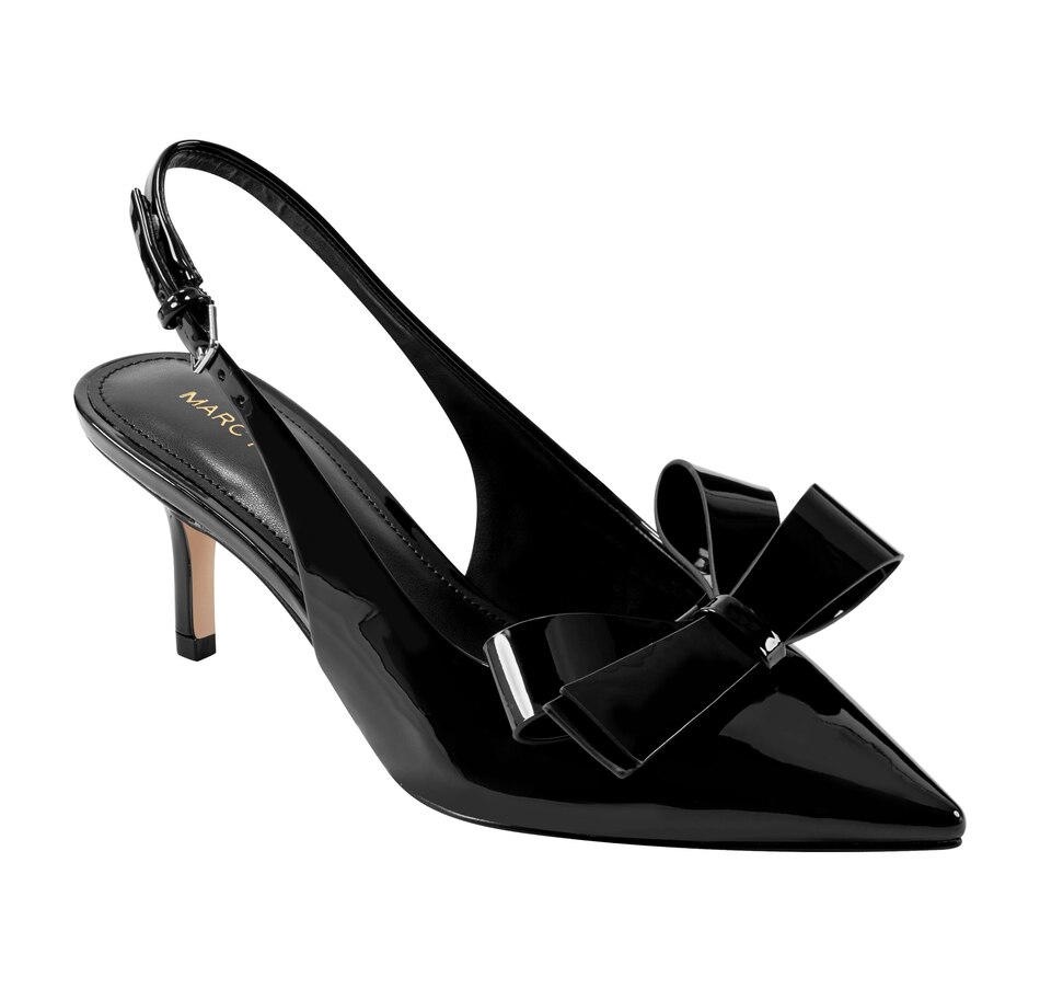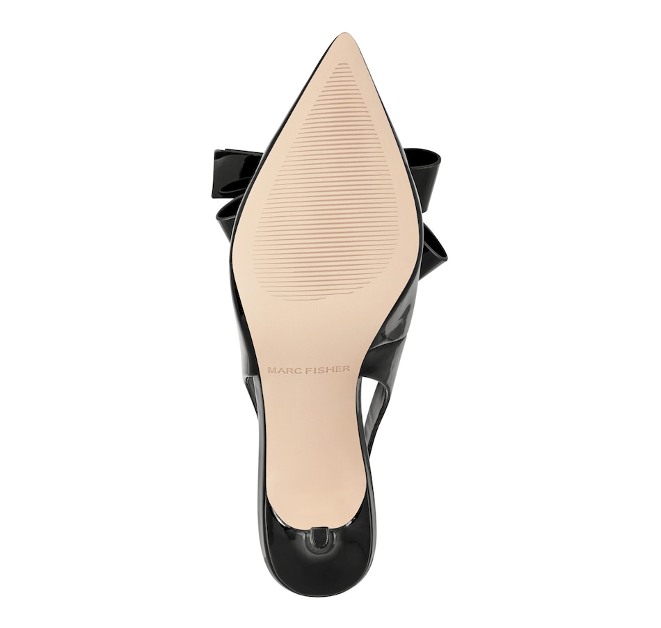 Stay fashionable in the Marc Fisher Allon dress slingback. It features bow detailing on the upper, a mid stiletto heel and a pointy toe. The Allon is sure to impress! Designed for the modern woman, Marc Fisher Footwear provides statement shoes for every occasion.