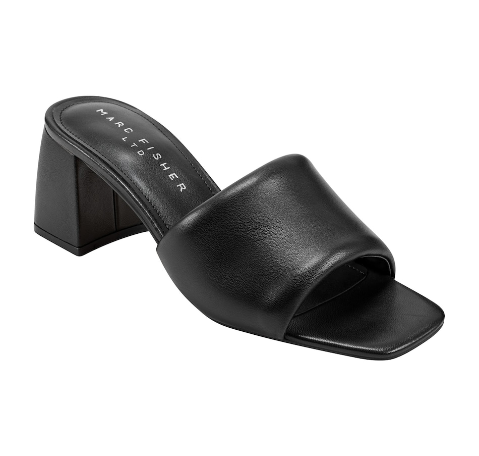 The Marc Fisher Nombra dress sandal is a fashion forward must-have for the coming season. It features a mid block heel, puffy upper strap and modern square toe. It finished with an easy slip-on design for added comfort. This sandal is sure to elevate any outfit!