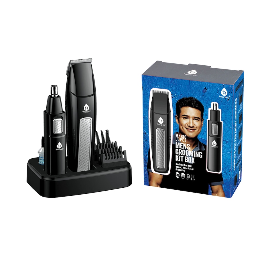 Upgrade your grooming routine with the Mario Lopez Men's Grooming Kit, a comprehensive set designed to meet all your grooming needs. This 10-piece kit is meticulously crafted for precision and versatility, ensuring that you always look your best. Stainless Steel Precision Clipper: Our premium stainless steel clipper is built to last and delivers precise, consistent results with every use. Adjustable Guide Combs: Customize your haircut and grooming style with ease using the four adjustable guide combs. Ear/Nose/Brow Trimmer: Unwanted hair is no match for this handy trimmer. Safely and comfortably trim hair from your ears, nose, and eyebrows. Cleaning Brush & Clipper Oil: Maintenance is a breeze with the included cleaning brush and clipper oil.