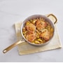 • Martha Stewart 3.5-Quart Everyday Sauté Pan with Lid (brass handles, Tri Ply, stainless steel)