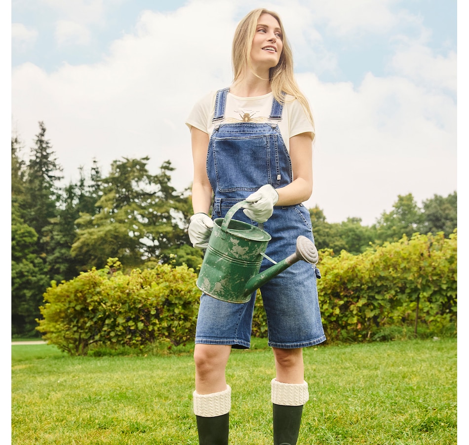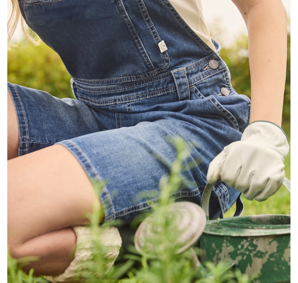 Ideal for gardening, these vintage wash stretch denim shortalls from Martha Stewart offer durability and flexibility. Their timeless look and comfortable fit make them ideal for tackling any outdoor project.