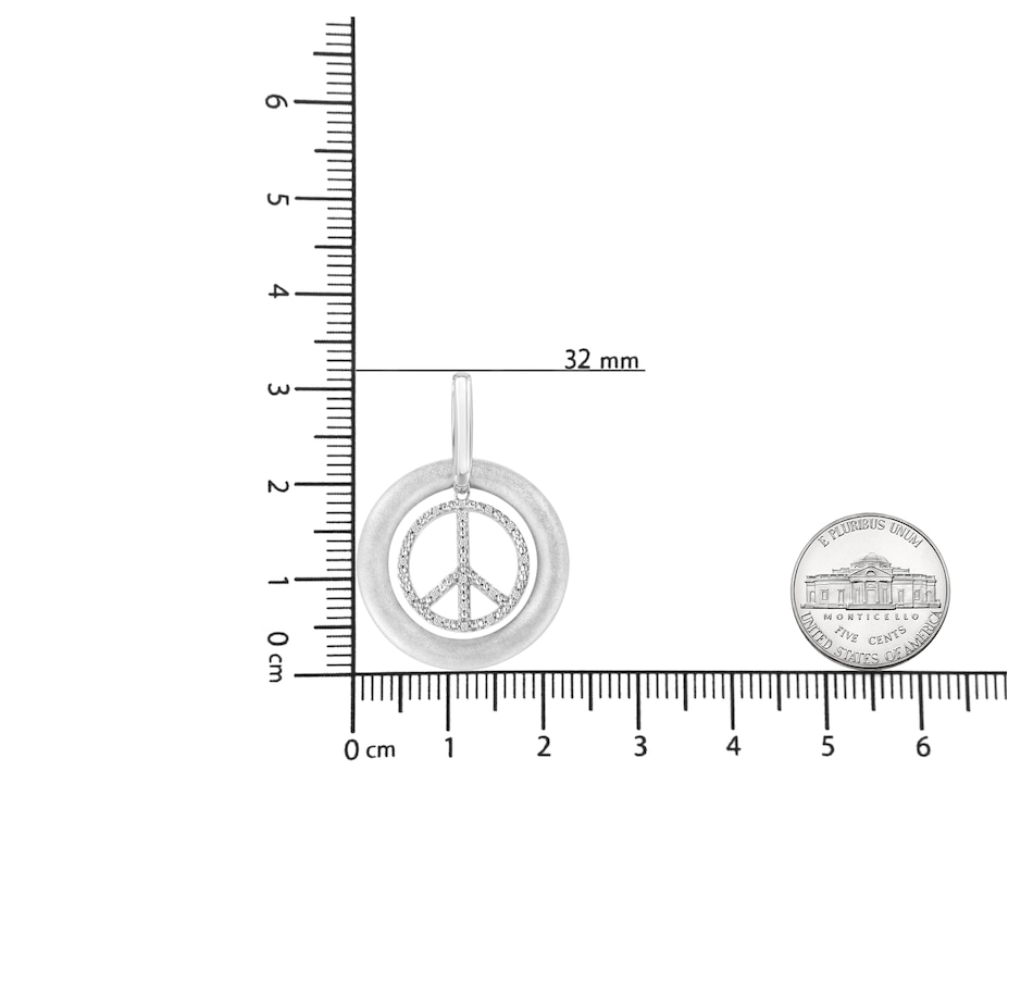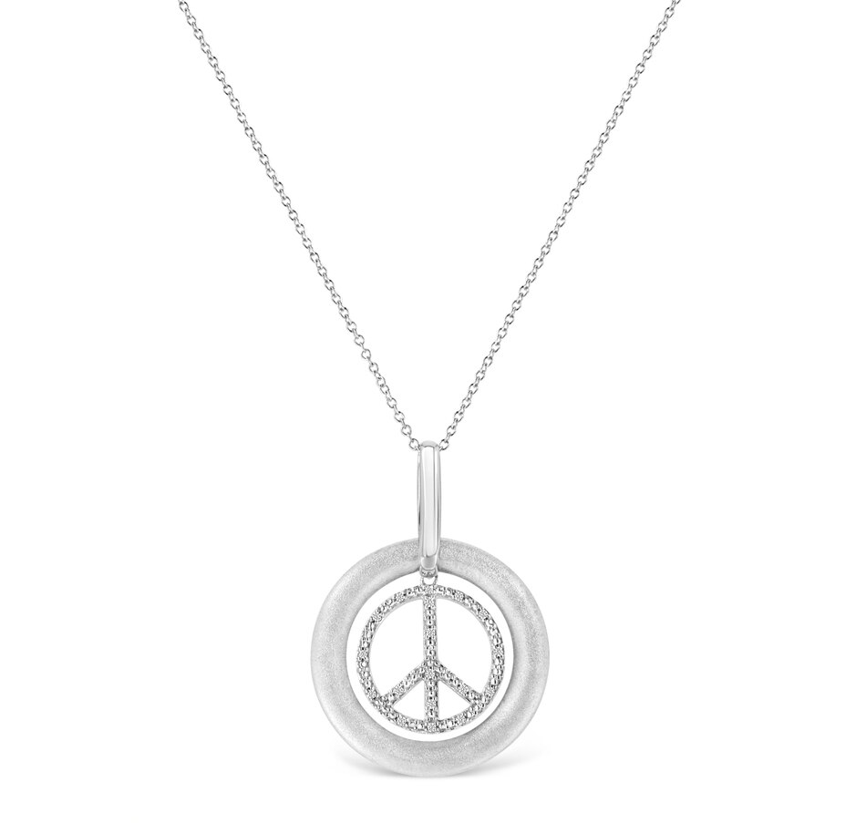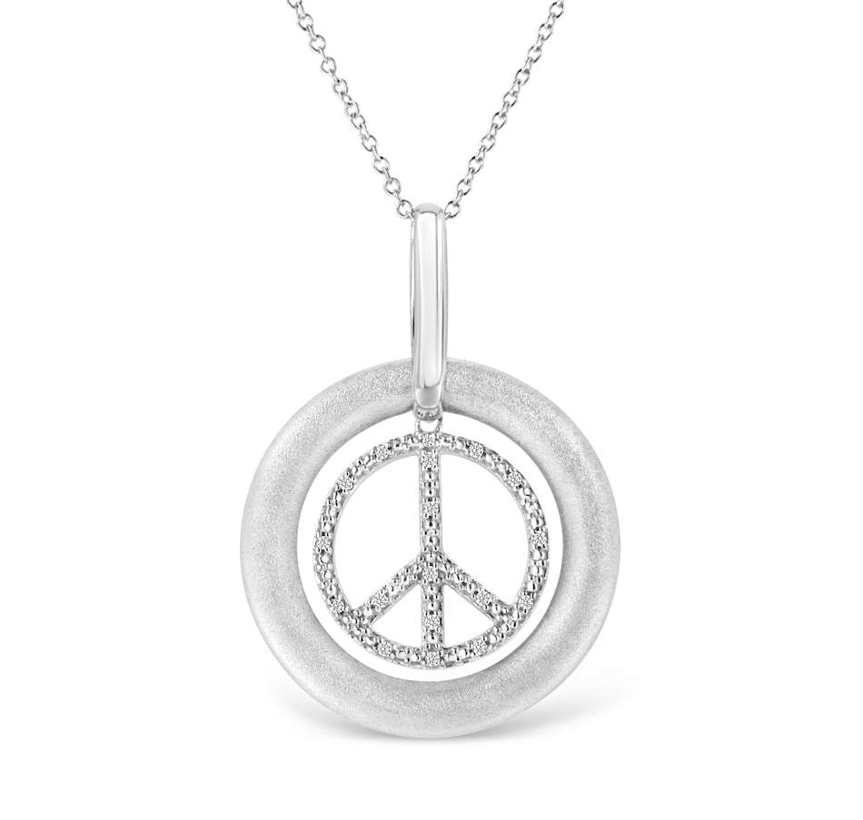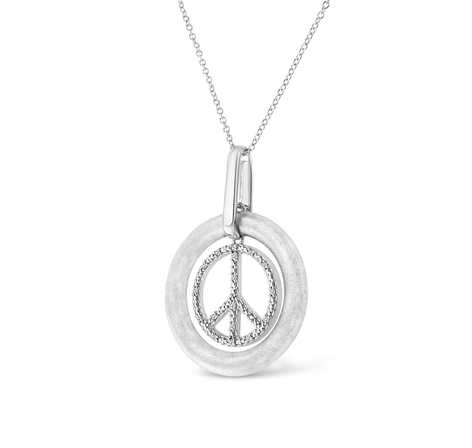 Matte Finish .925 Sterling Silver Diamond Accent Dancing Peace Sign 18" Pendant Necklace (I-J Color, I1-I2 Clarity)