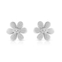 Celebrate your blooming love with these adorable diamond flower earrings made from .925 sterling silver and given a matte finish. Charming style for your sweetheart, these sterling silver floral earrings are embellished by a cluster of 10 pave set single cut accent diamonds at the center. These blossoms closes with a secure clasp. Total diamond weight is 1/20 ctw.