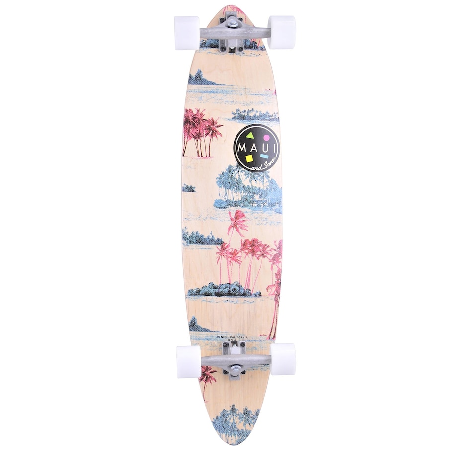 The Maui And Sons pintail longboard is as classic as can be. The traditional pintail shape takes the rider back to a time where the only worries were where to eat after watching the sunset. With the perfect amount of flex and strength, you’re in for the most fun ride of your life! Perfect for any level, the Maui And Sons pintail longboard will give you a silky smooth ride every time.