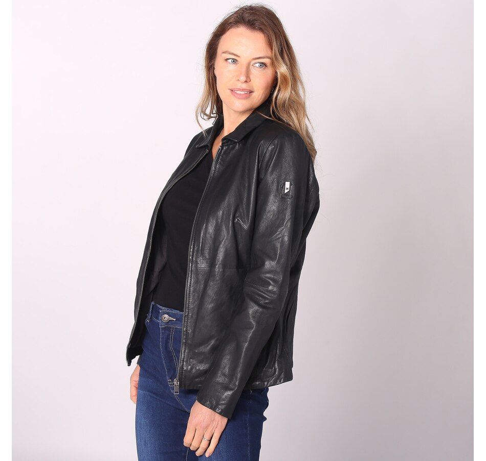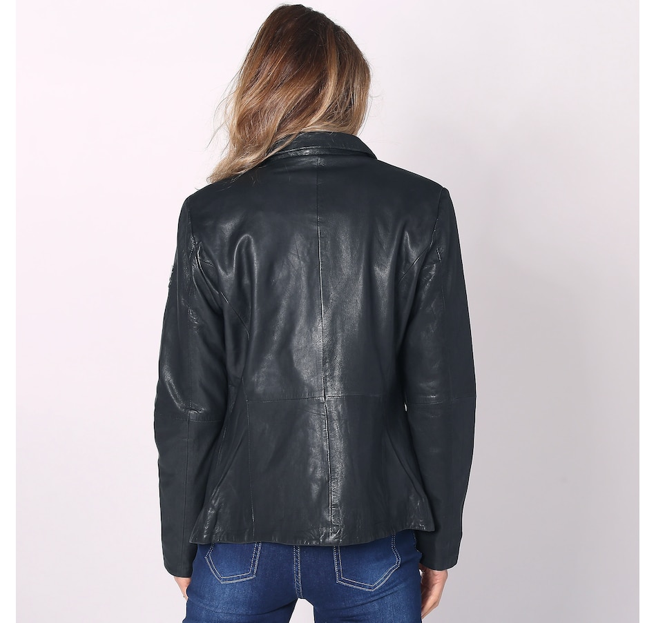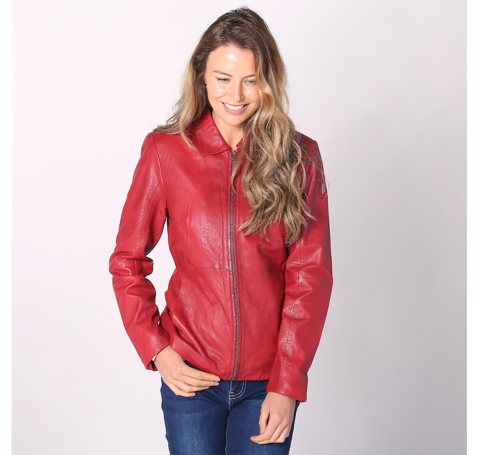 Chic and fitted, you'll finish your cooler weather look in obvious style with the classic Kelley collared leather jacket from Mauritius. It is designed with a decidedly slim European fit, and is vegetable tanned and ethically produced for the more social conscious fashionista.