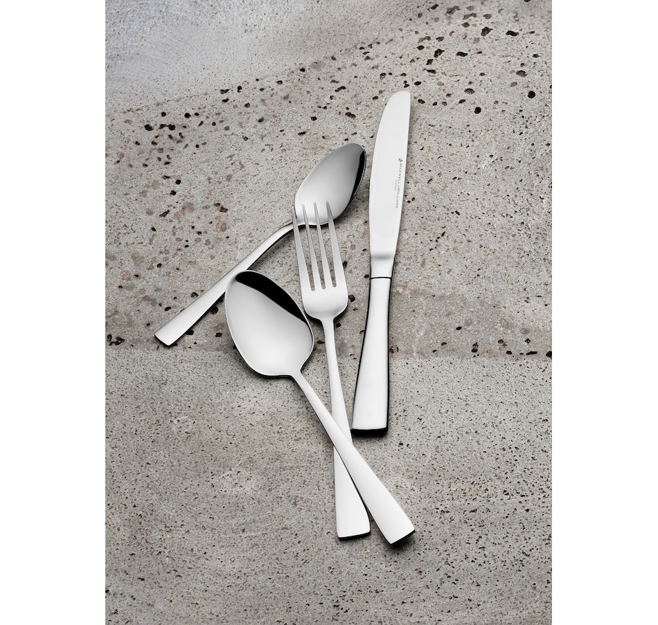 This 16-piece Arden cutlery set adds a unique edge to your table setting, with a beautiful design and a classic high-polish finish. Made from quality stainless steel, this contemporary cutlery features broad heads, slender profiles and squared handles, for a distinctly modern feel. This is contemporary cutlery with a classic stainless steel finish.