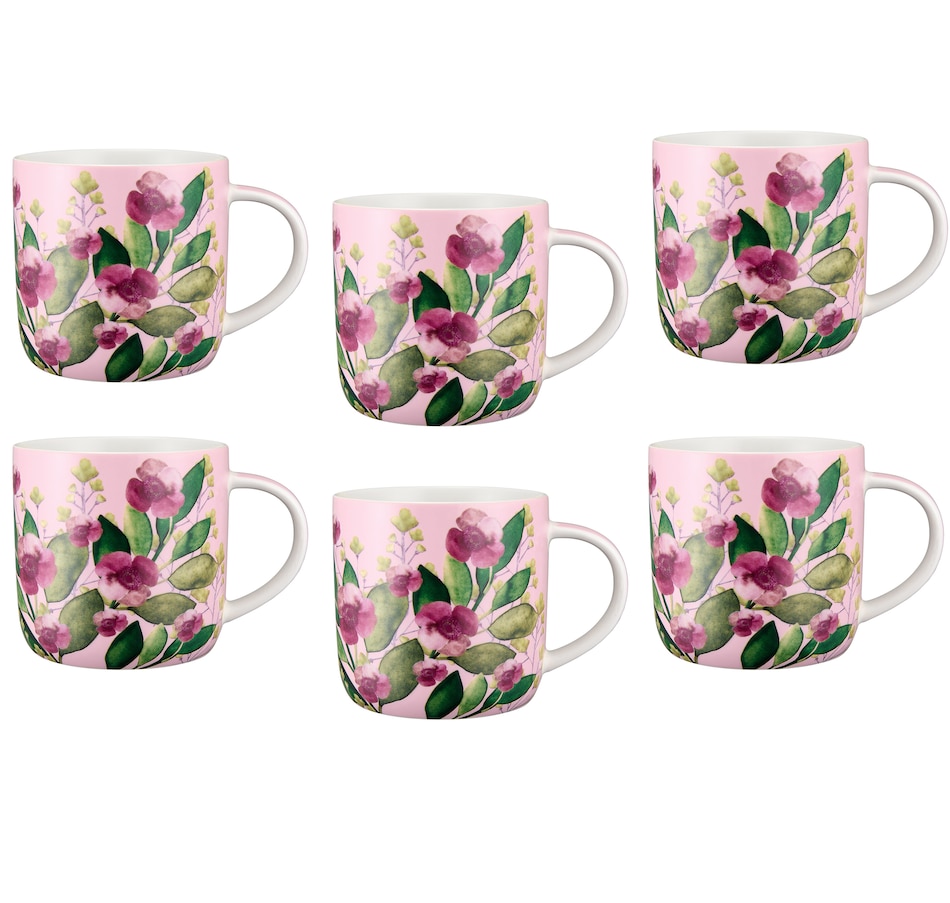• (6) Maxwell & Williams Bouquet Green/Pink Mug, 480 ml