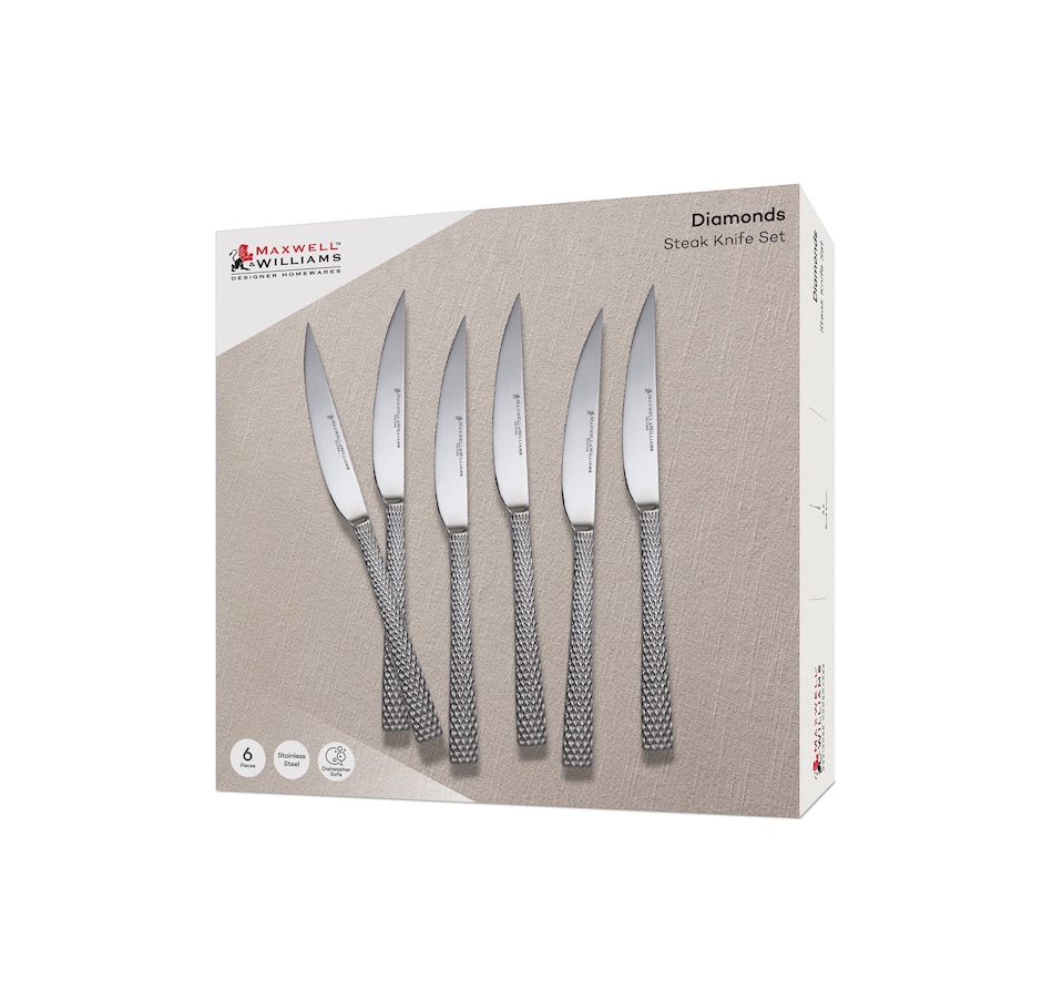 Make the occasion with the sparkle of Diamonds cutlery. This luxurious cutlery collection adds a touch of chic with a textured surface pattern inspired by the facets on a precious stone. Gently tapered handles and rounded heads give this cutlery a classic profile that will complement all settings. Made from quality stainless steel with a brilliant high polish, it’s the perfect accent to your favourite dinner set.