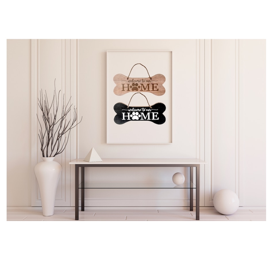 The MDF Bone Shaped Plaque is an ideal wall sign that features the text “Welcome To Our Home.” It is a boned-shaped wall-hanging sign that looks adorable and cool at the same time. It also acts as a warning sign that the house is guarded by a pet dog and makes the guests aware of the same. Hang this funny wall decor piece on the entrance to make people awestruck. This item is sold on a per piece basis. Design: MDF Bone Shaped Plaque (Welcome To Our Home) (Asstd) Material: Wood Dimension: 11.80 L × 0.40 W × 6 H inches Use: Ideal for wall decor Care Tip: Spot clean