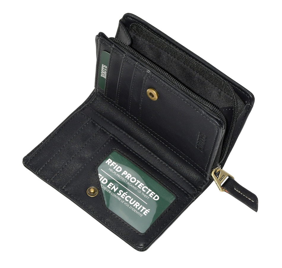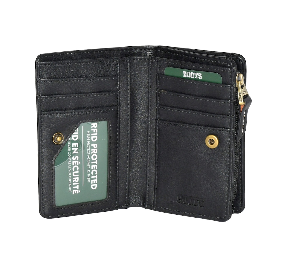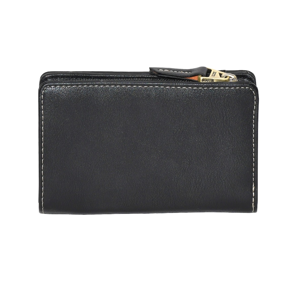 Lakefields Collection Medium Ladies Wallet from Roots is designed to keep your essentials organized and secure. It features 6 credit card slots, a dedicated ID window, and a spacious bill compartment for easy access to your cash. Four additional slot pockets help you store receipts, cards, or notes, while the gusseted zippered pocket offers extra space for coins. Sleek, practical, and timeless – this wallet is your new everyday essential.