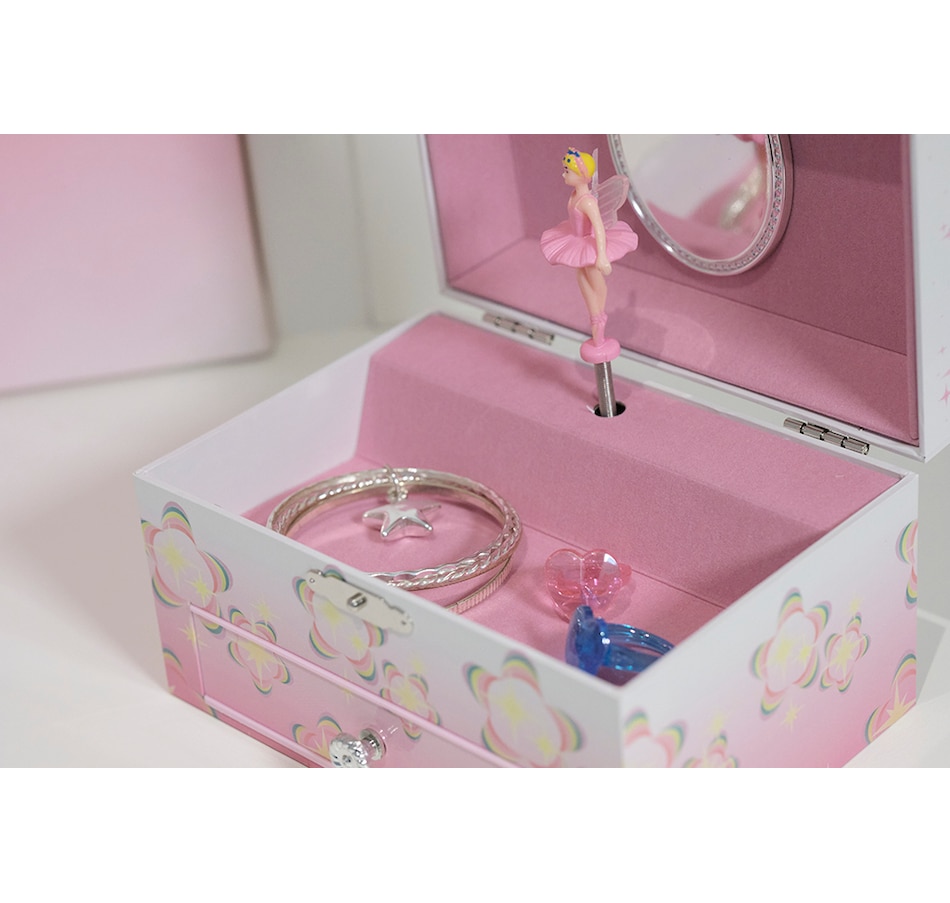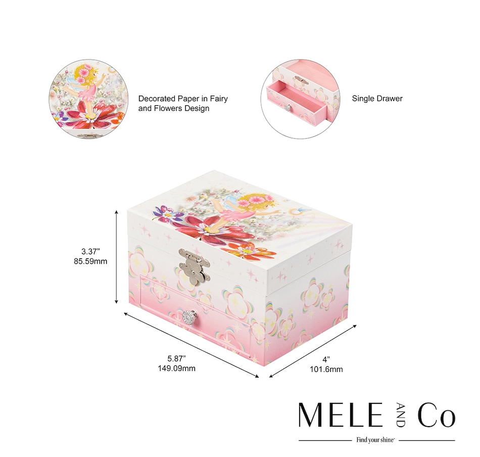 Fun and fanciful, the Mele and Co. Ashley musical jewellery box will enchant and delight young and old alike. With a twirling fairy and glittery accents, this jewelry case is every little one's dream.