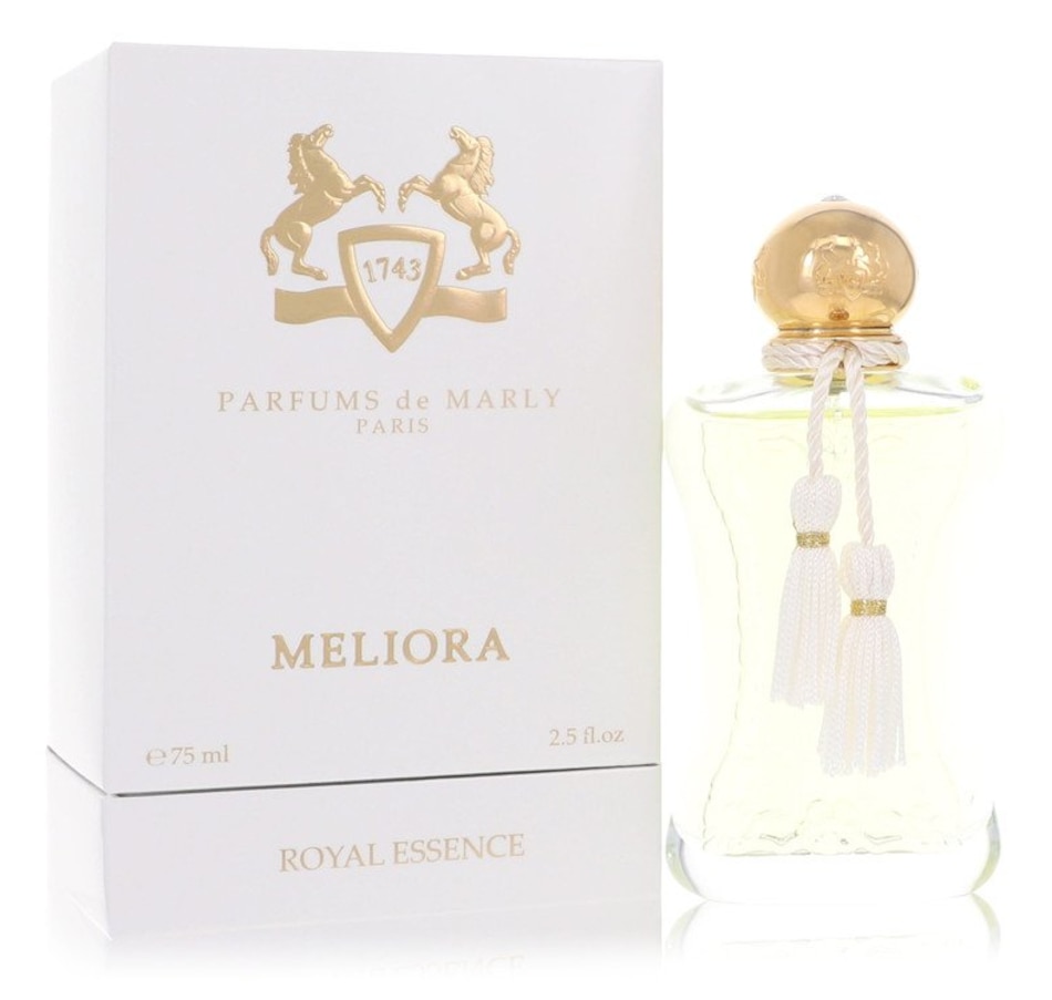 An aromatic fragrance for women, Meliora by Parfums de Marly is a wonderful blend of fruit and flowers. It leads with top notes of tart red berries, black currant and cassis, which is the leaves and buds of black currants. Breathe deep and enjoy the floral heart notes of intensely romantic rose, clean, white lily of the valley and rich ylang-ylang.