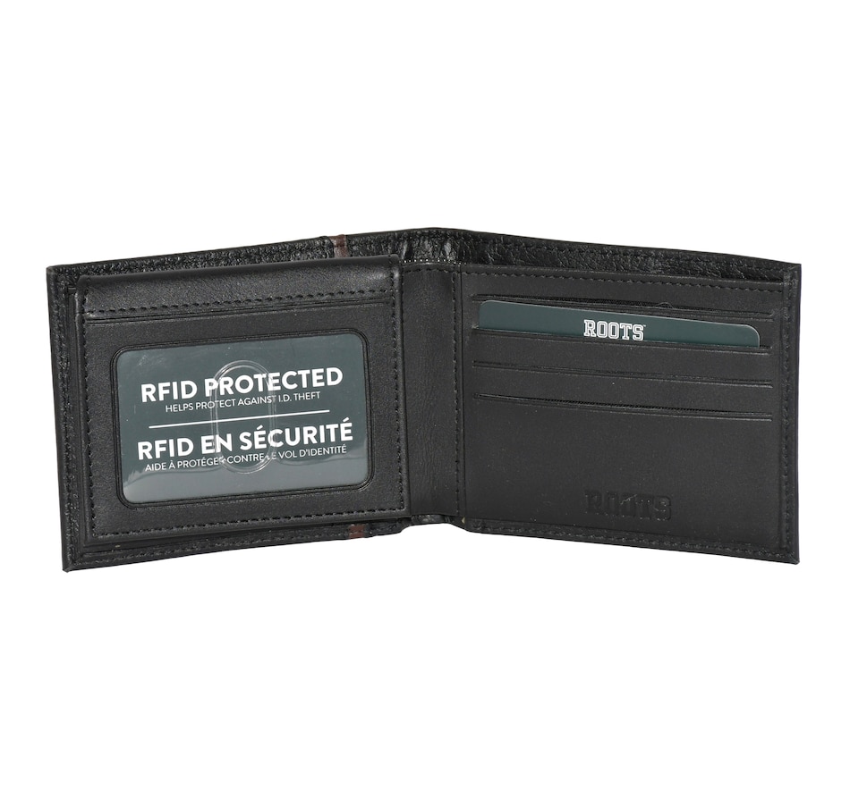 The Thornhill Collection’s Men’s Slim Top Flap Wallet by ROOTS is the perfect blend of style, practicality, and craftsmanship. Made from premium leather, this wallet features 8 credit card slots, 2 ID windows, and 1 slot pocket, providing ample space to organize your cards, IDs, and cash. The non-removable top flap closure ensures secure storage, while maintaining a sleek, slim profile that fits comfortably in your pocket. Ideal for the modern man who values both convenience and sophistication, this wallet keeps your essentials organized and easily accessible.