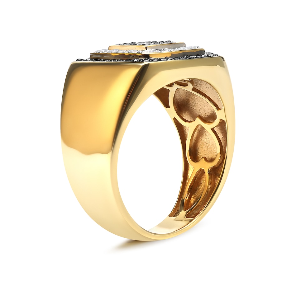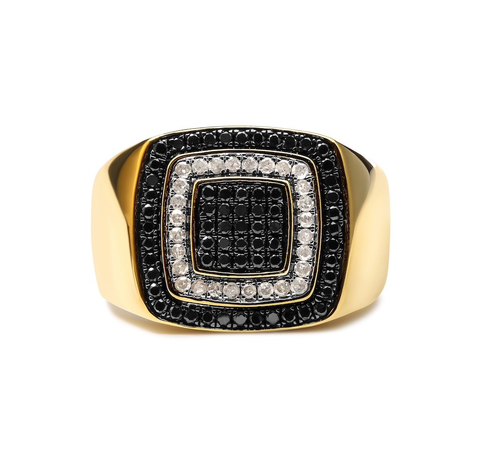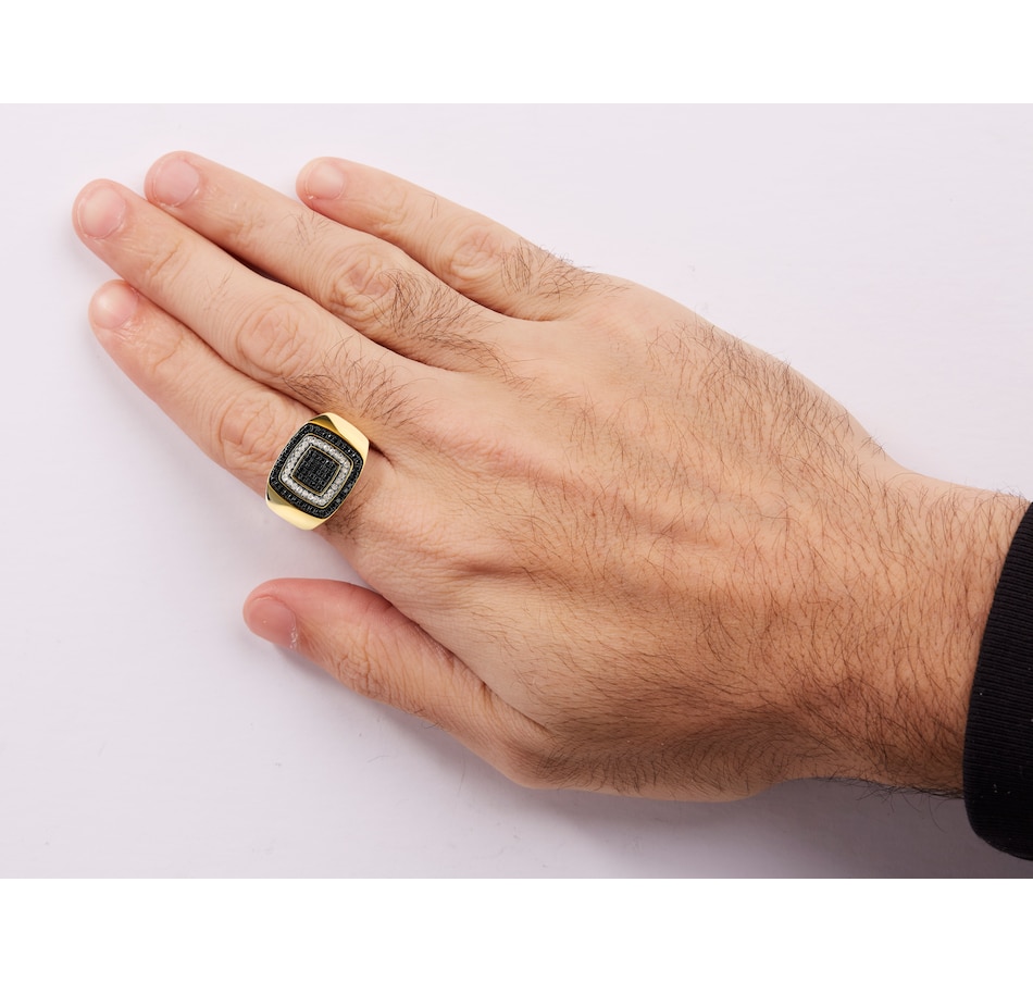 Men's 10K Yellow Gold 3/4 Cttw White and Black Diamond Ring Band