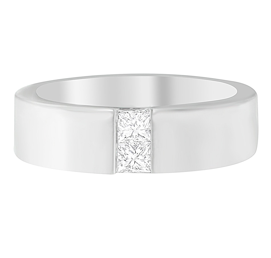 This stunning 14 karat white gold Ring has massive princess cut diamonds embedded right at its center. This will definitely make a statement next time you wear it out.