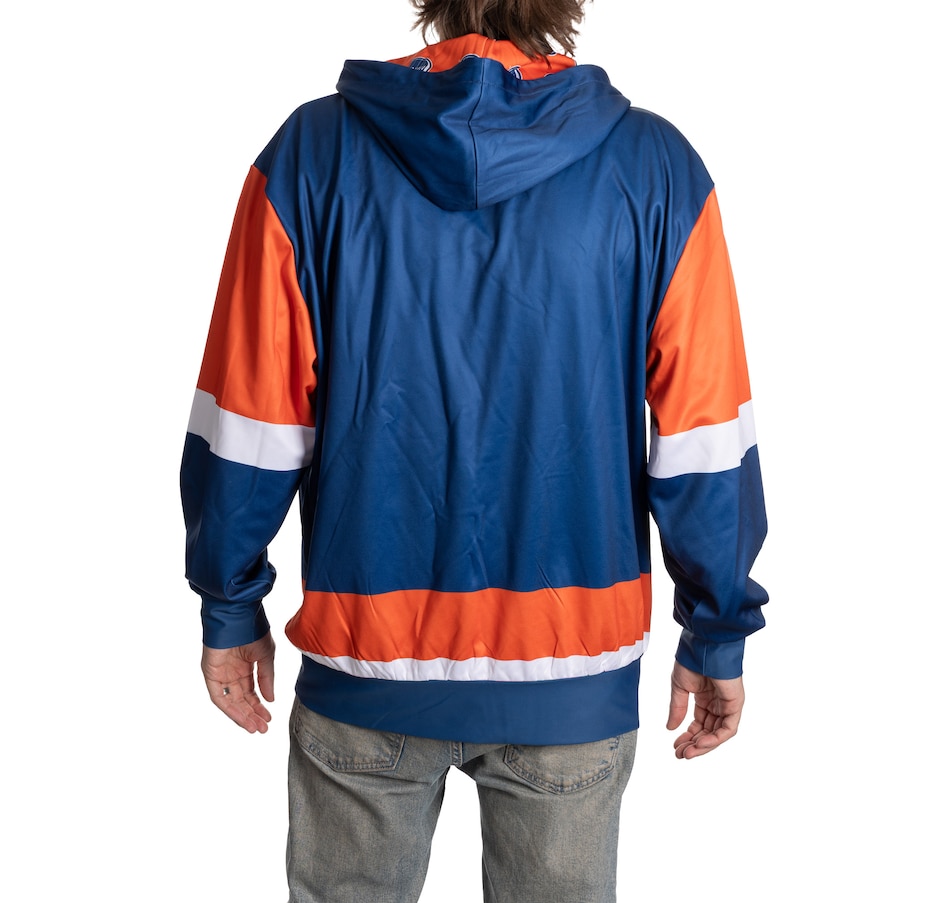 This officially licensed NHL authentic apparel features the iconic Oilers logo and colour scheme. It is made from 100% poly knit, for softness, warmth, and long-lasting durability, and designed with a universal cut that suits all body types, making it easy to wear. The bibbed cuffs and hem provide a snug fit and help block out the wind, while the adjustable drawstring hood and front pocket add warmth and convenience.